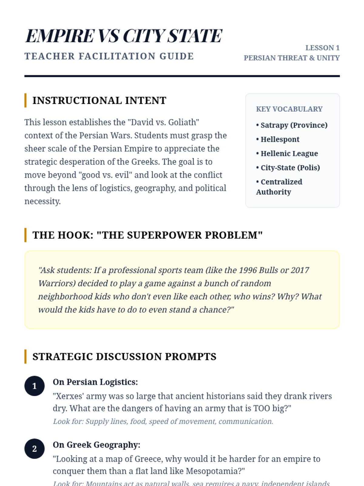 City State Dossier Teacher Guide