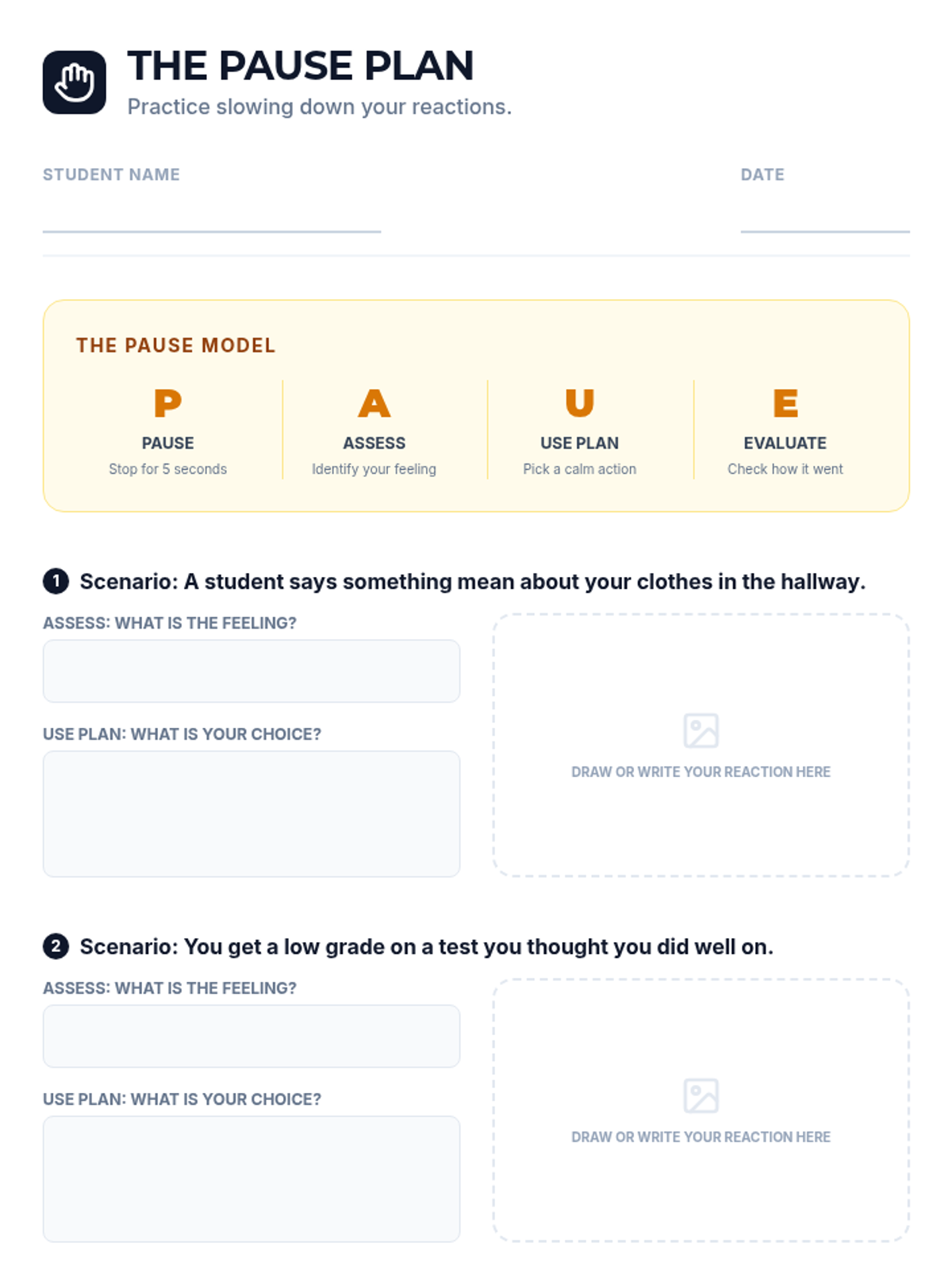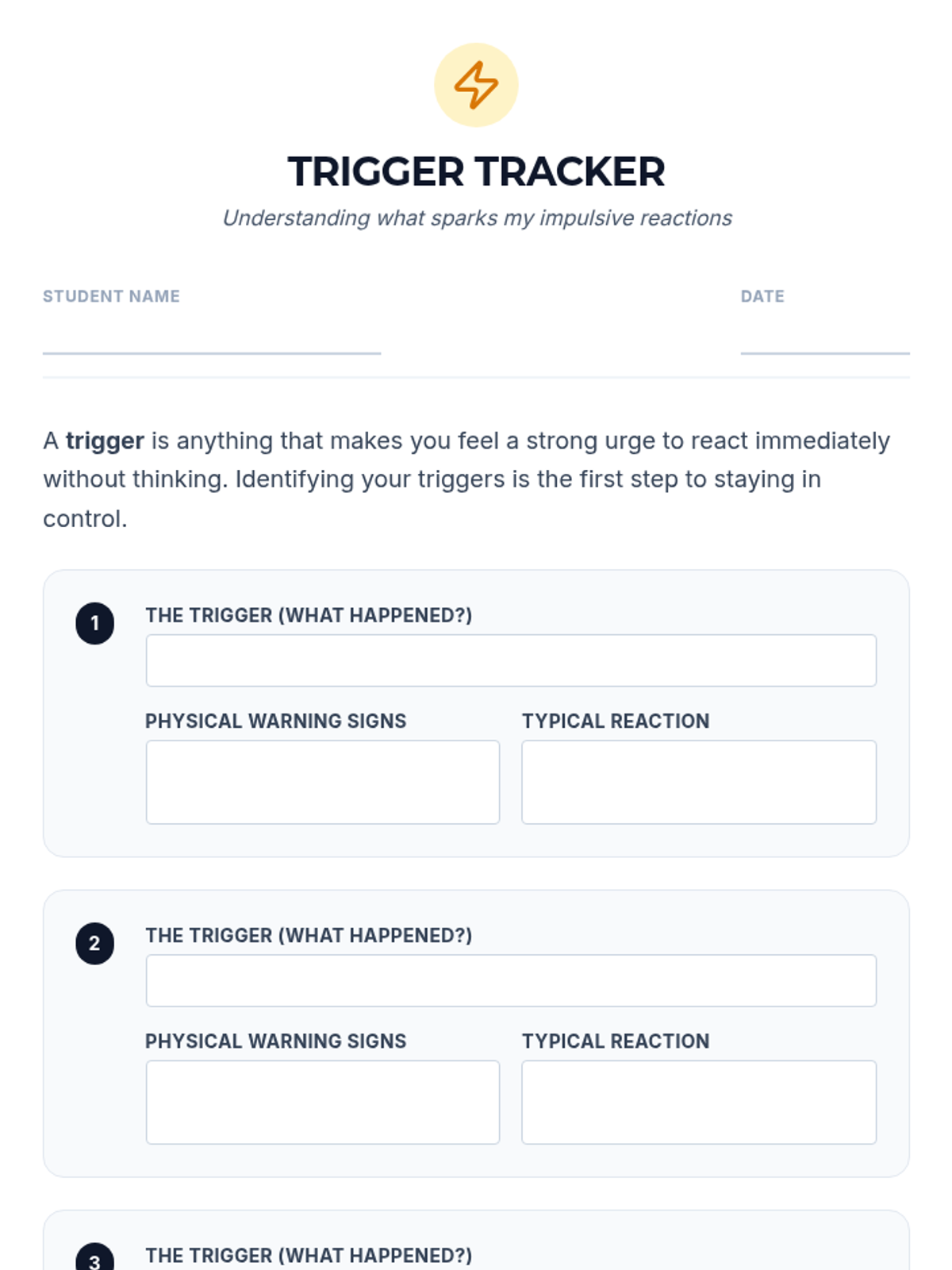 A two-session mini-unit for middle school small groups focused on understanding disruptive behaviors, identifying personal triggers, and developing concrete self-regulation strategies. Students move from awareness of external and internal pressures to practicing and planning constructive responses.