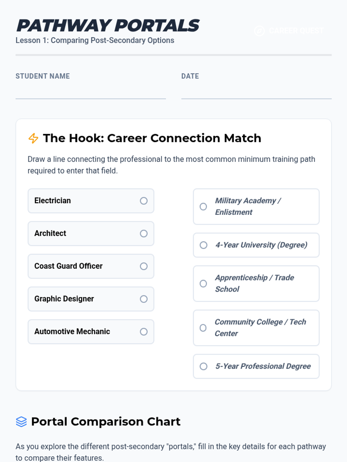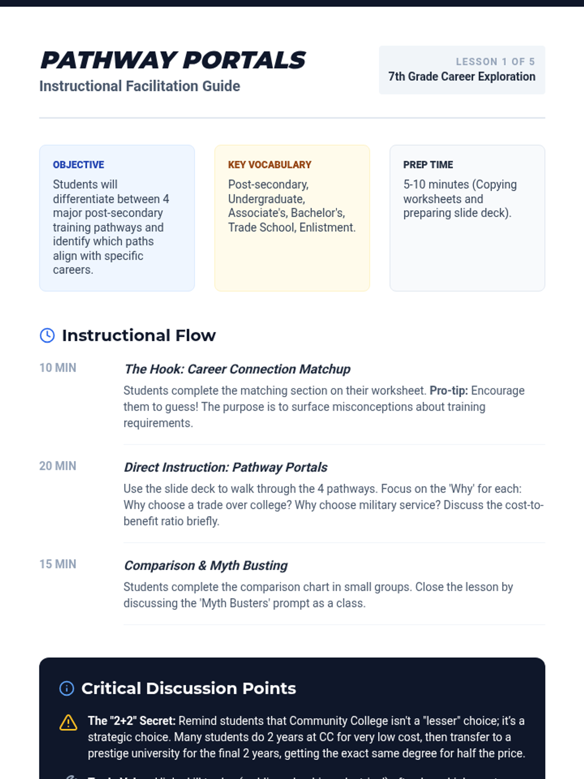 College selection, application workflows, and financial aid navigation including FAFSA and scholarship acquisition. Builds skills in personal statement writing and career exploration to align post-secondary choices with long-term professional goals.