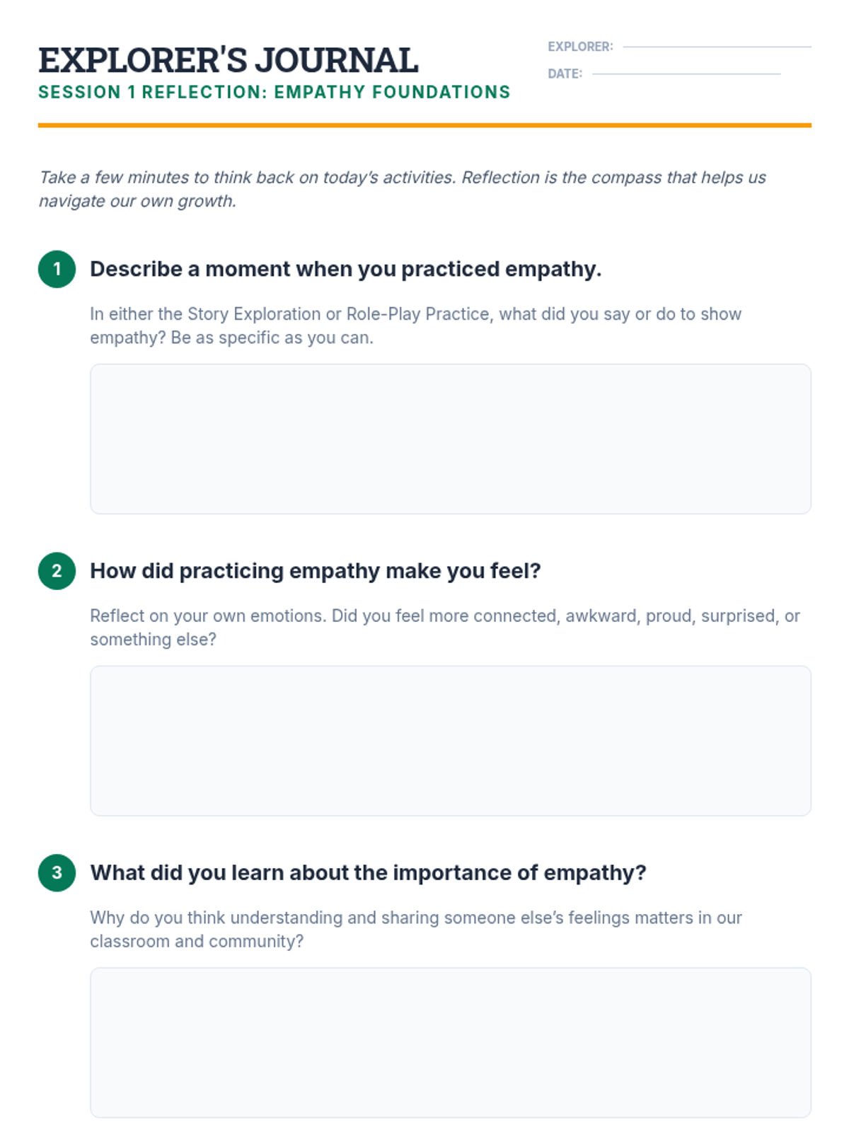 A 6-week Tier 2 small group intervention for middle schoolers to develop social-emotional skills including empathy, emotional regulation, and conflict resolution. Students engage in lab-style reflections and activities to build a toolkit for self-management and social awareness.