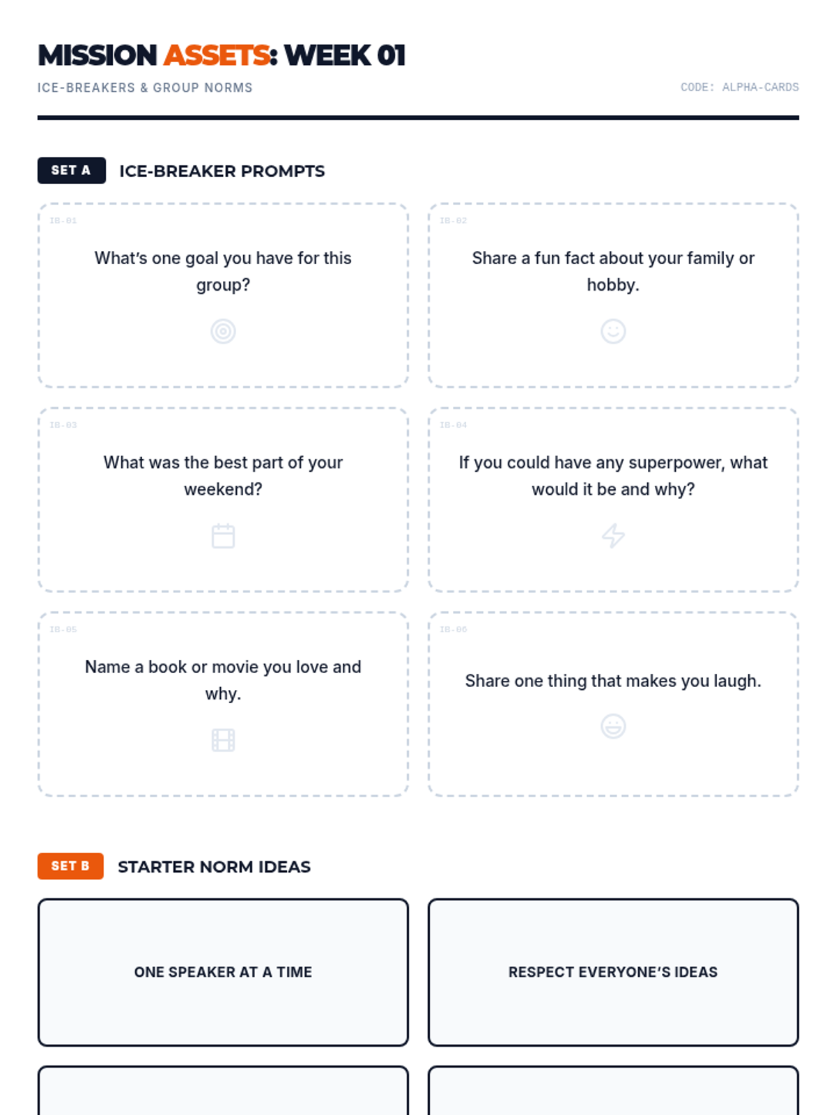 A series of 20 short, 15-minute restorative circle sessions designed for 7th and 8th-grade girls to build accountability, encouragement, and positive relationships. Each session includes a facilitator guide and a student reflection handout.