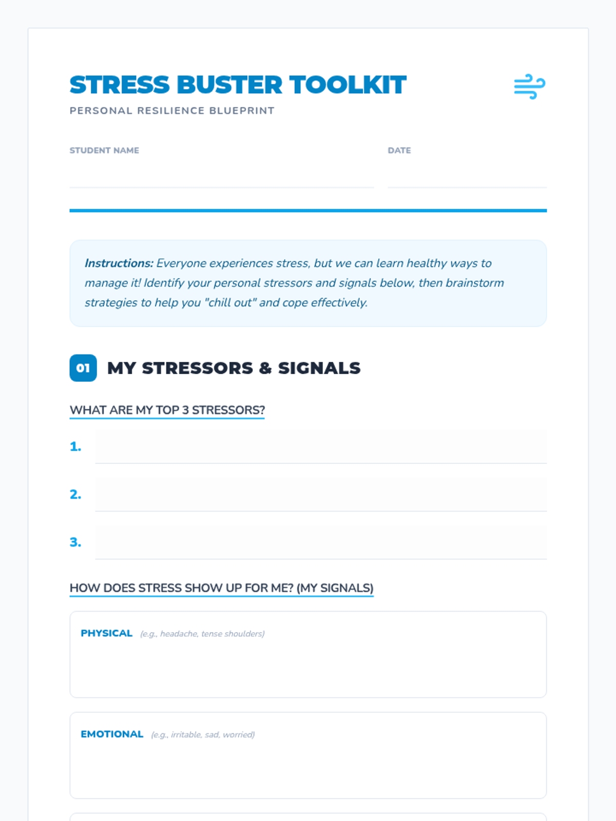 A two-part series for middle school students to develop self-regulation and impulse control by identifying physical body signals and building a personal toolkit of coping strategies and sensory breaks.