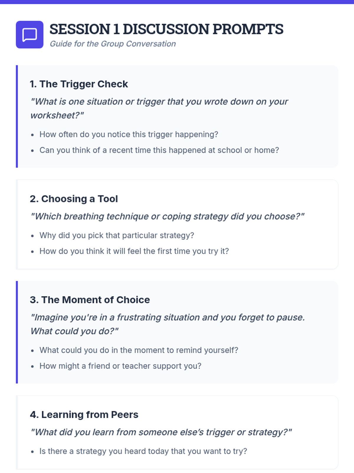 A 5-session small-group series for middle schoolers to explore anger, build emotional vocabulary, identify triggers, and develop personalized coping plans.