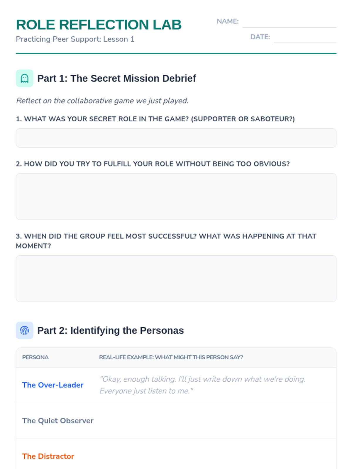 A 5-lesson unit for 7th-grade students focused on developing the skills necessary for effective and inclusive peer support groups. Students progress from identifying group roles to facilitating a mock support session, learning to handle silence and difficult disclosures with empathy.