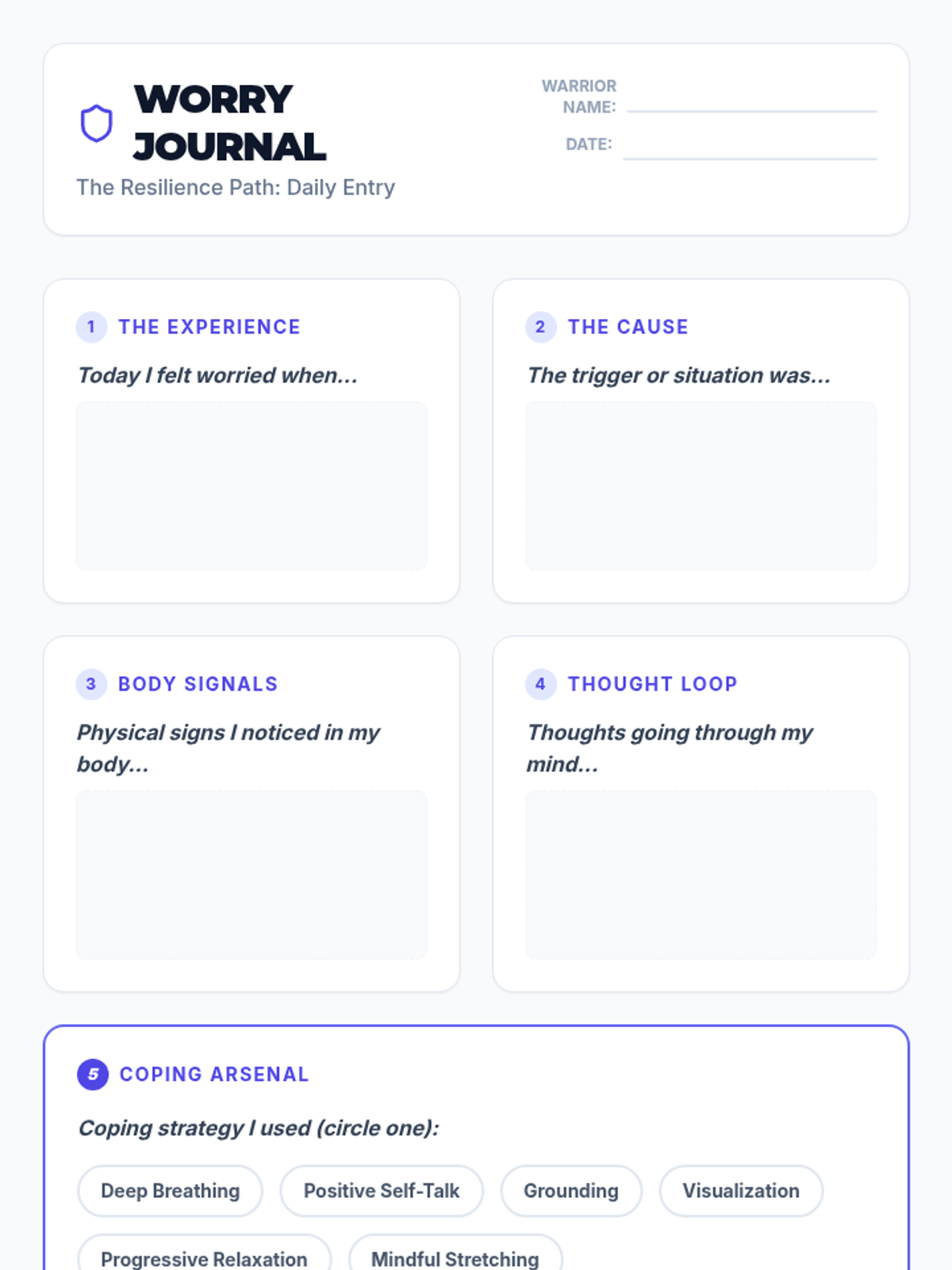 A three-part intervention series designed for two middle school boys to master anxiety management. The series frames coping skills as 'tactical maneuvers' for a 'Field Agent' and their 'Support Specialist', focusing on physical grounding, cognitive reframing, and social support.