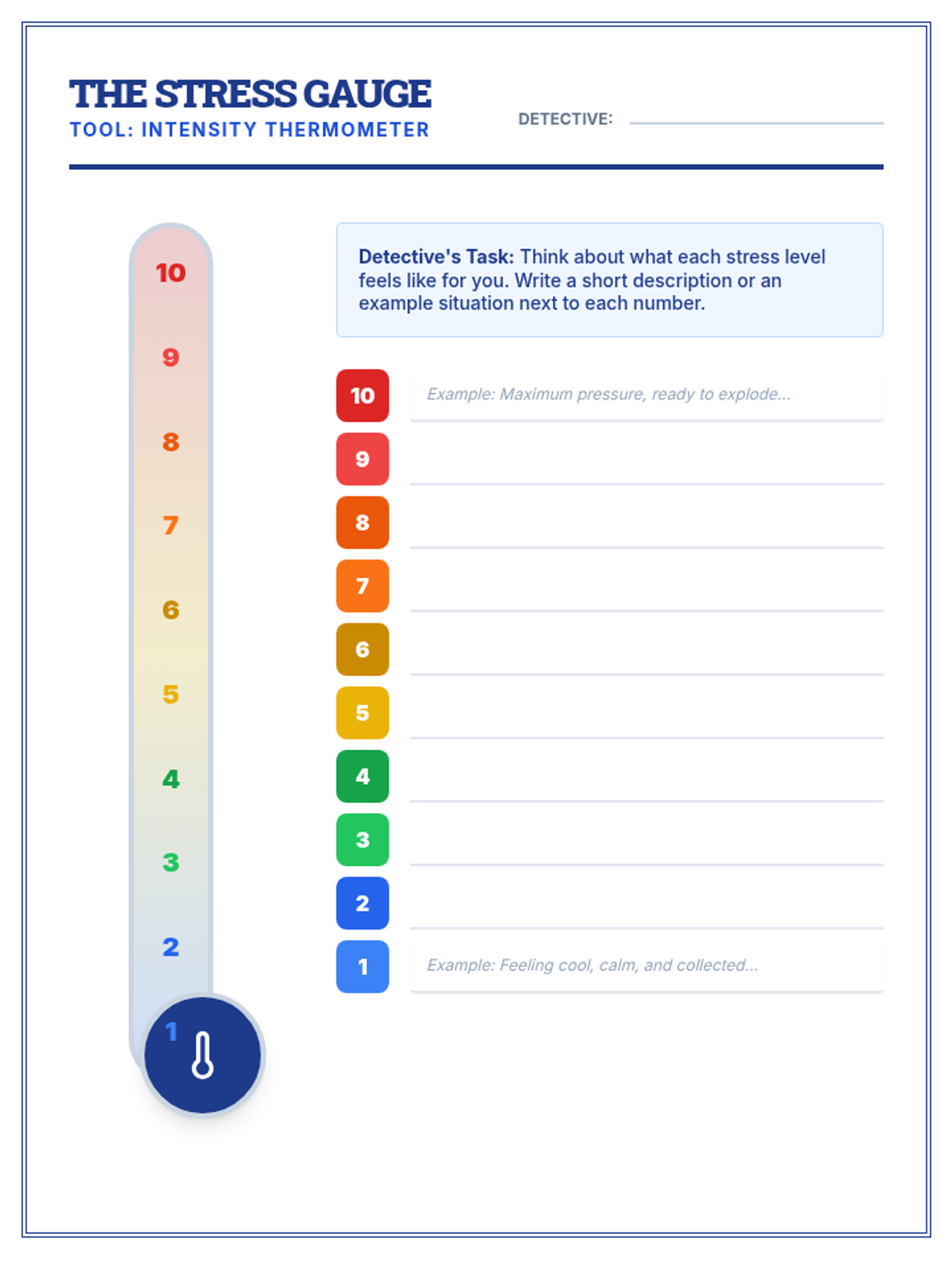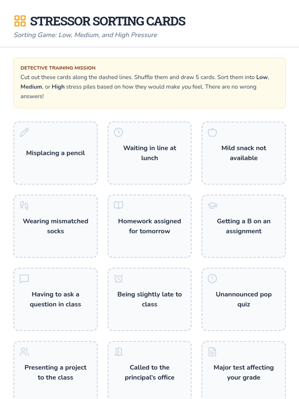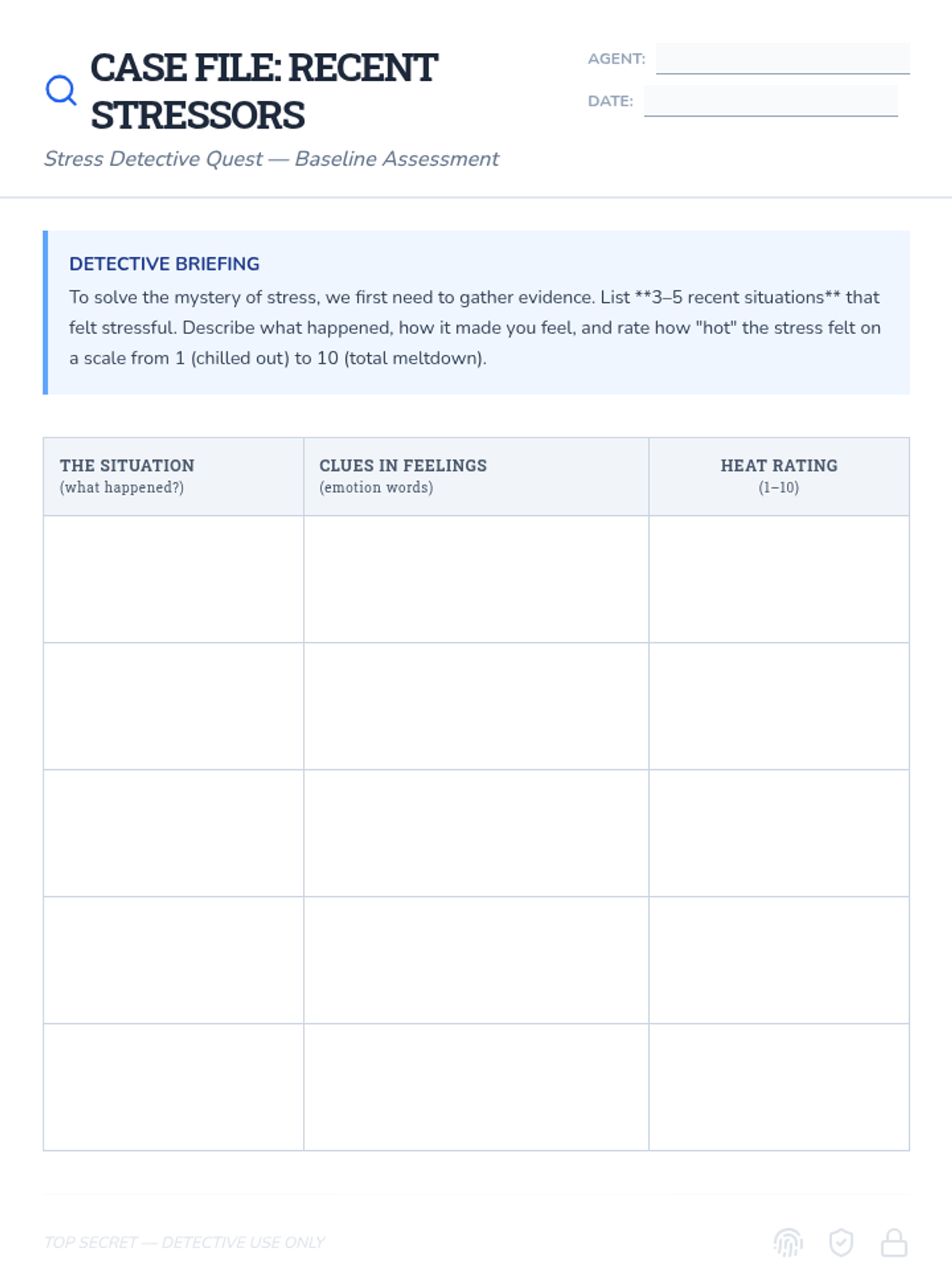 A 10-session Tier 3 support program for 7th-grade students with seizure histories, focusing on identifying stressors, physical cues, and evidence-based coping mechanisms through a 'Detective Quest' theme.
