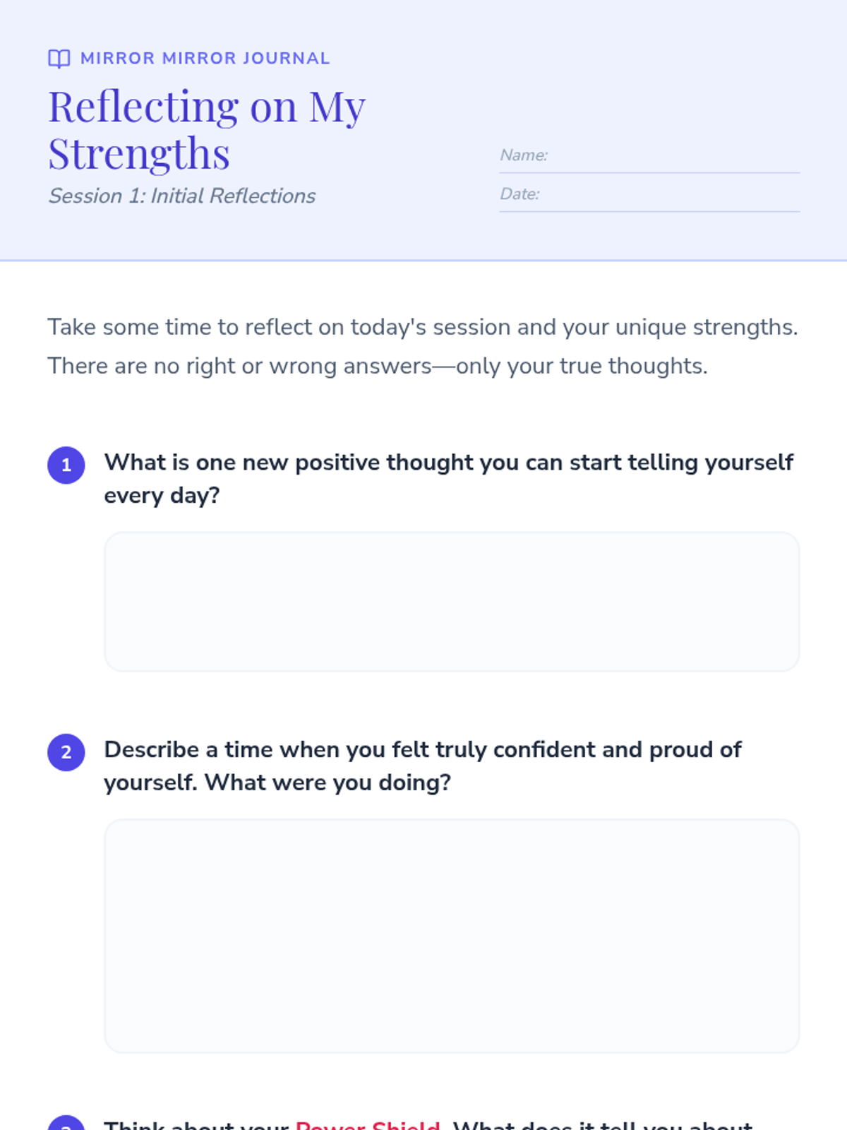 A 6-week educational and reflective journey designed for a 13-year-old girl to explore emotional literacy, develop coping strategies for depression, and navigate complex family dynamics with a focus on self-compassion and boundary setting.