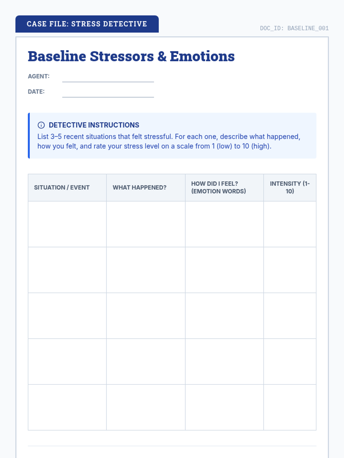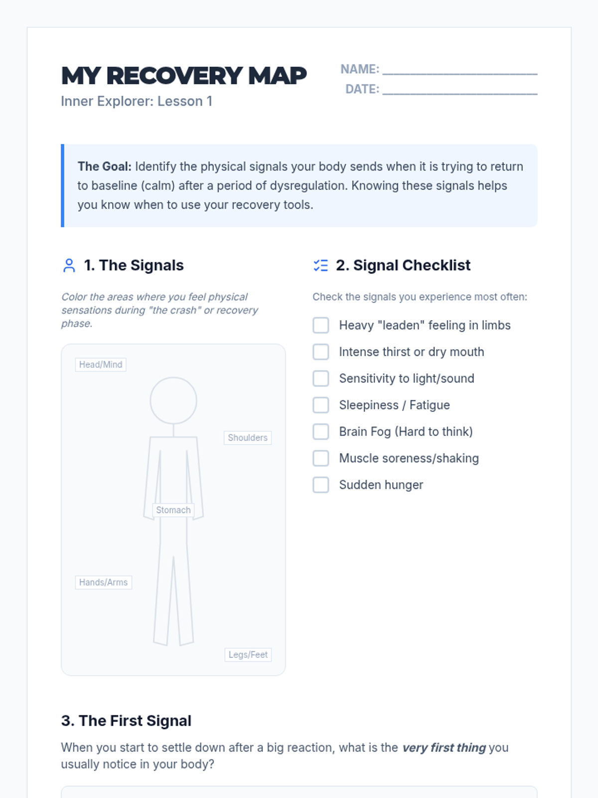 This sequence guides 6th-grade students through the biological mechanisms of stress and recovery. Students explore the autonomic nervous system to identify personal physiological indicators of escalation and de-escalation, culminating in a personalized 'Body Map' and 'Baseline Checklist' to recognize when they are ready to return to learning.