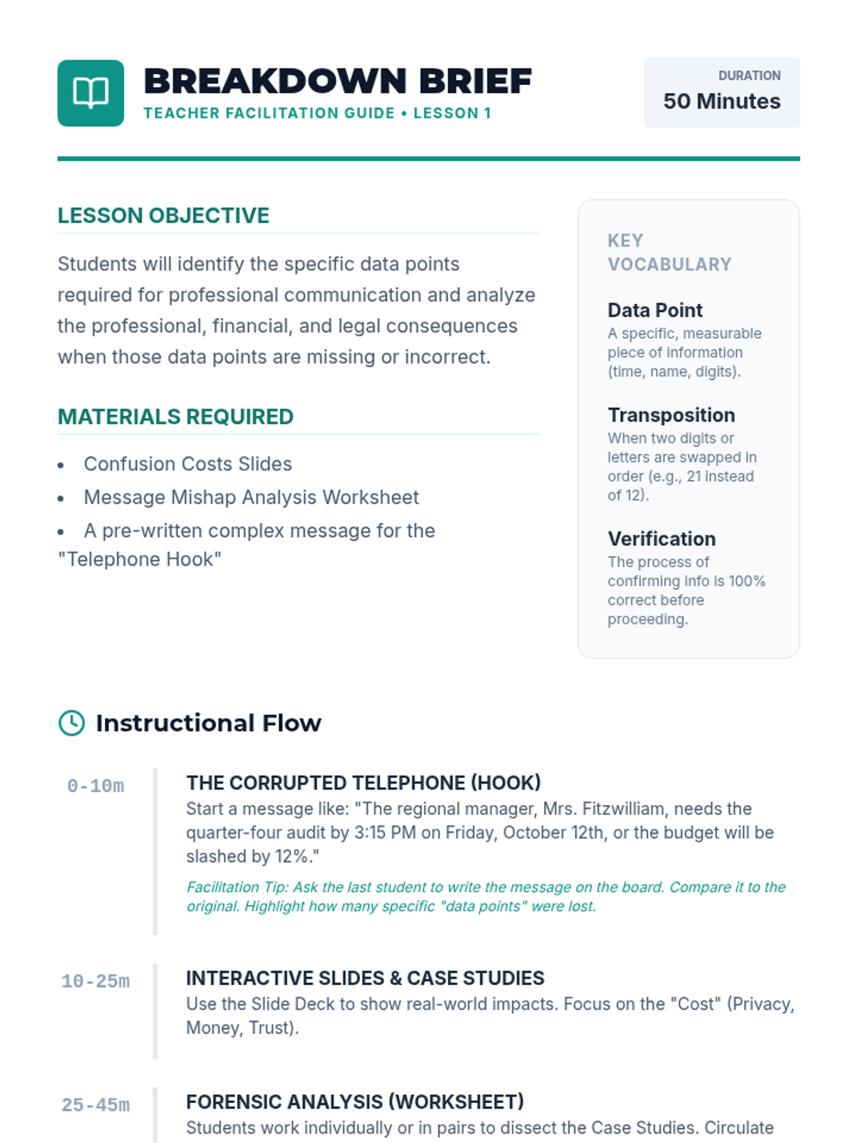 Written and verbal communication standards for the workplace, including email etiquette, presentation delivery, and professional phone conduct. Develops collaborative skills for teamwork, constructive feedback, and efficient time management.