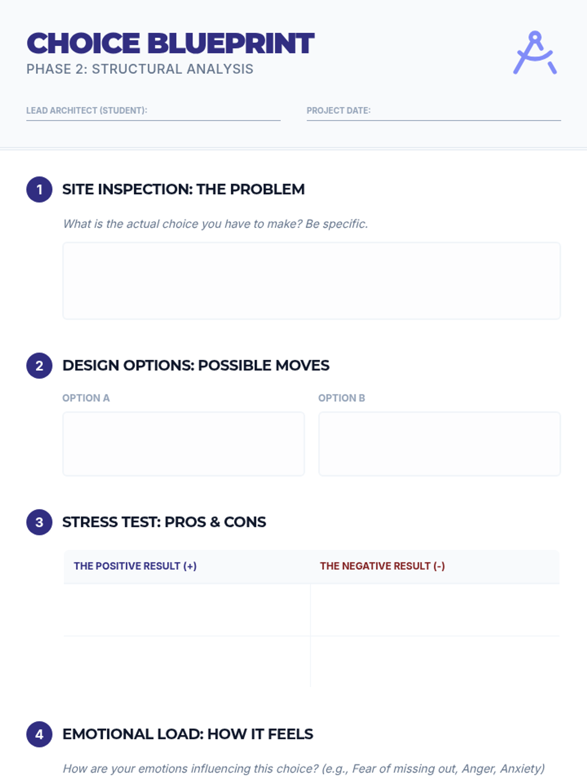 A 30-session group counseling curriculum for adolescent males focusing on social roles, group dynamics, and developing healthy friendship patterns. Through the metaphor of an architectural blueprint, students analyze leadership, support roles, and the difference between positive and negative group influences.