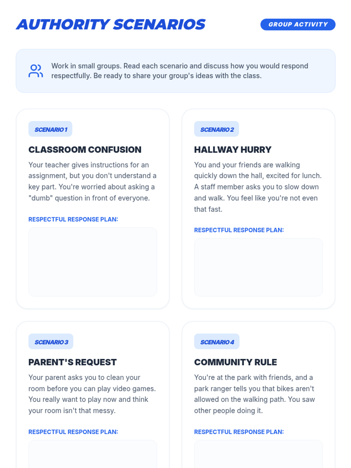 A four-part series for 6th and 7th graders that explores respect across four key contexts: authority, parents, peers, and self. Students develop social-emotional skills through discussion, reflection, and interactive scenarios.