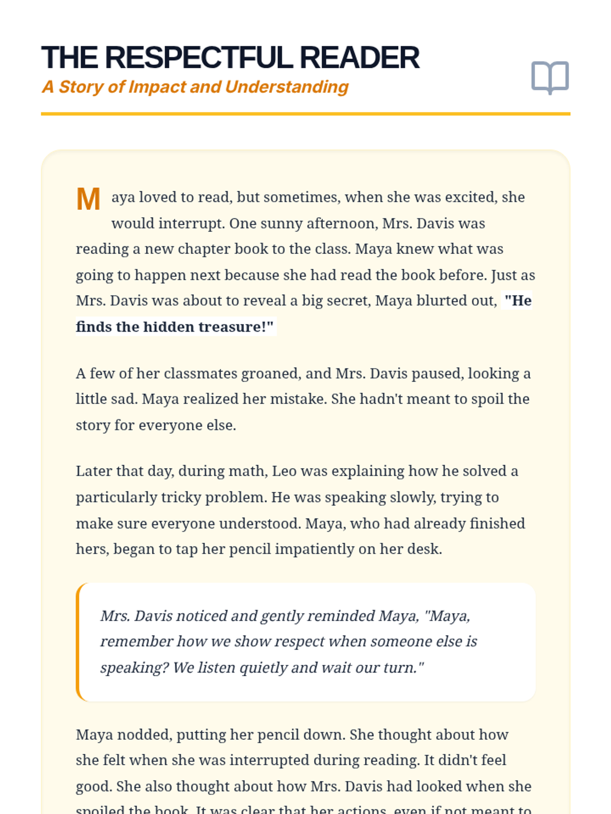 A comprehensive collection of lessons designed to empower students with the skills of storytelling and self-regulation. Through these sessions, students will learn to craft compelling narratives and master the art of self-control.