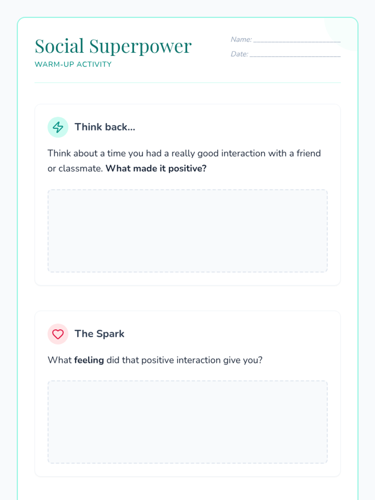 This project-based sequence explores emotional safety and decision-making in relationships. Students learn to balance friendships with romantic interests, trust their intuition, build resilience through rejection, and advocate for equality in their connections, culminating in a personal 'Relationship Rights' zine.