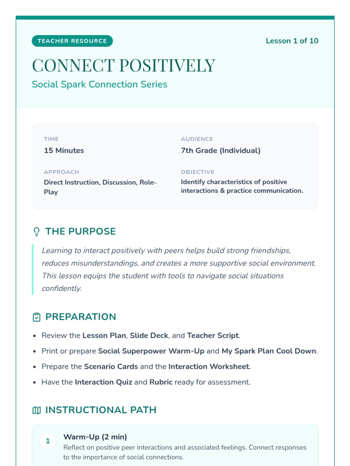 A 10-lesson Tier 3 intervention sequence for 7th-grade students focused on developing positive social skills, empathy, communication, and healthy relationship boundaries.