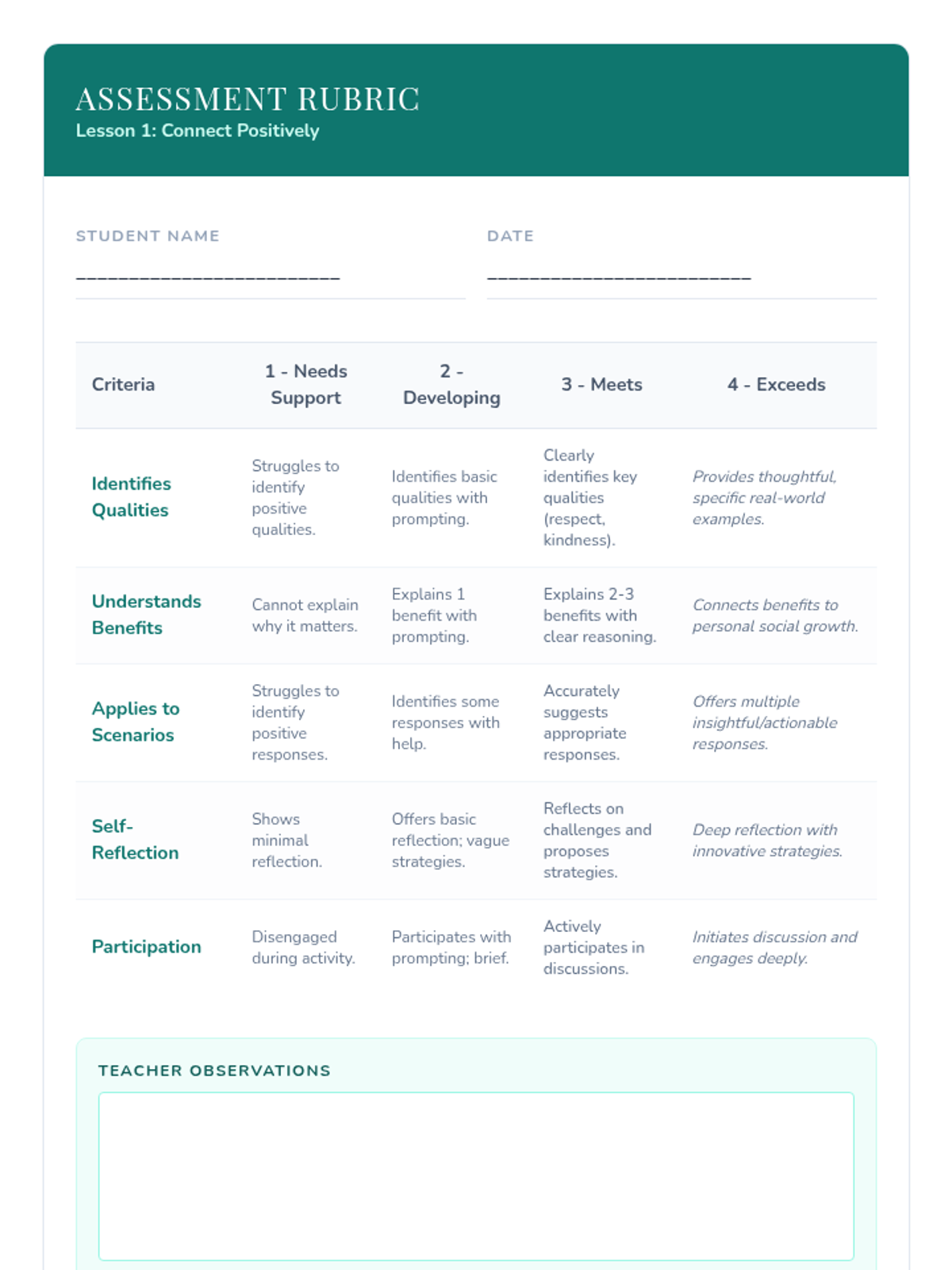 A comprehensive unit for 7th-grade students to identify healthy vs. unhealthy romantic relationship indicators, core values, and personal boundaries. Students will develop a 'Relationship Radar' to navigate social dynamics with emotional safety and autonomy.