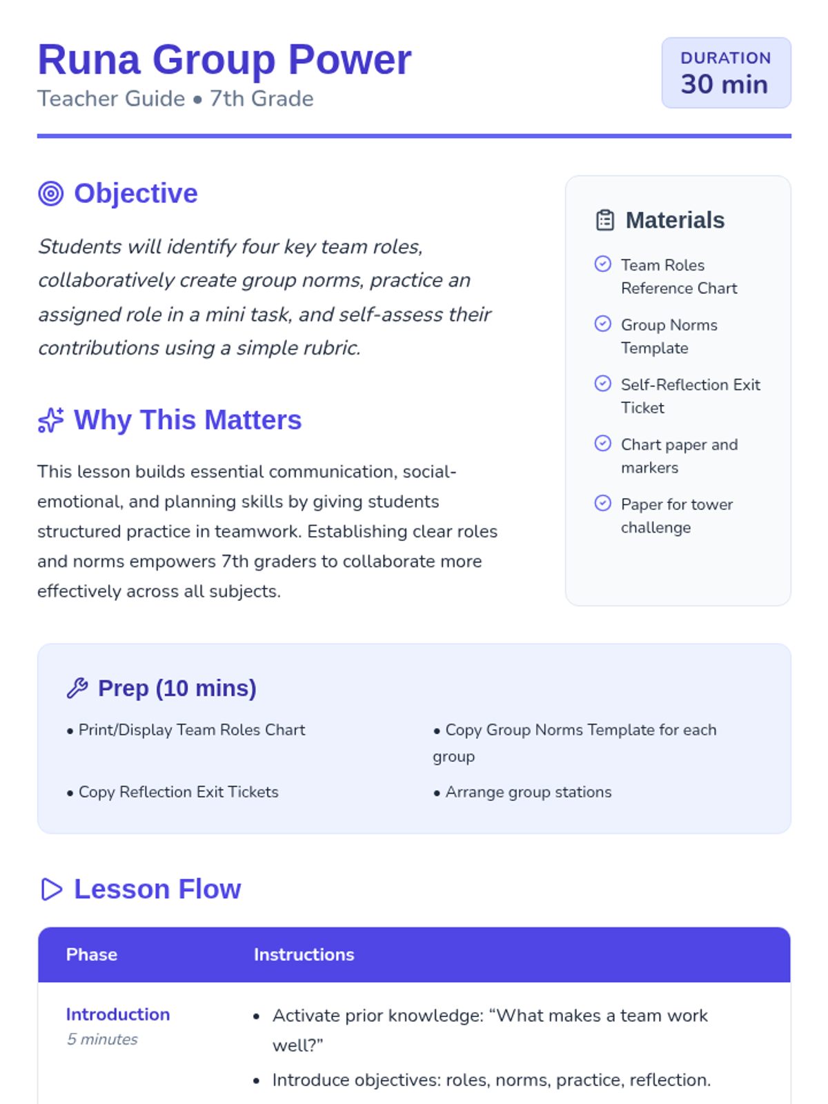 A 5-day series of 30-minute icebreaker sessions for middle schoolers to build rapport, communication, and a positive classroom atmosphere through Tier 2 group supports.