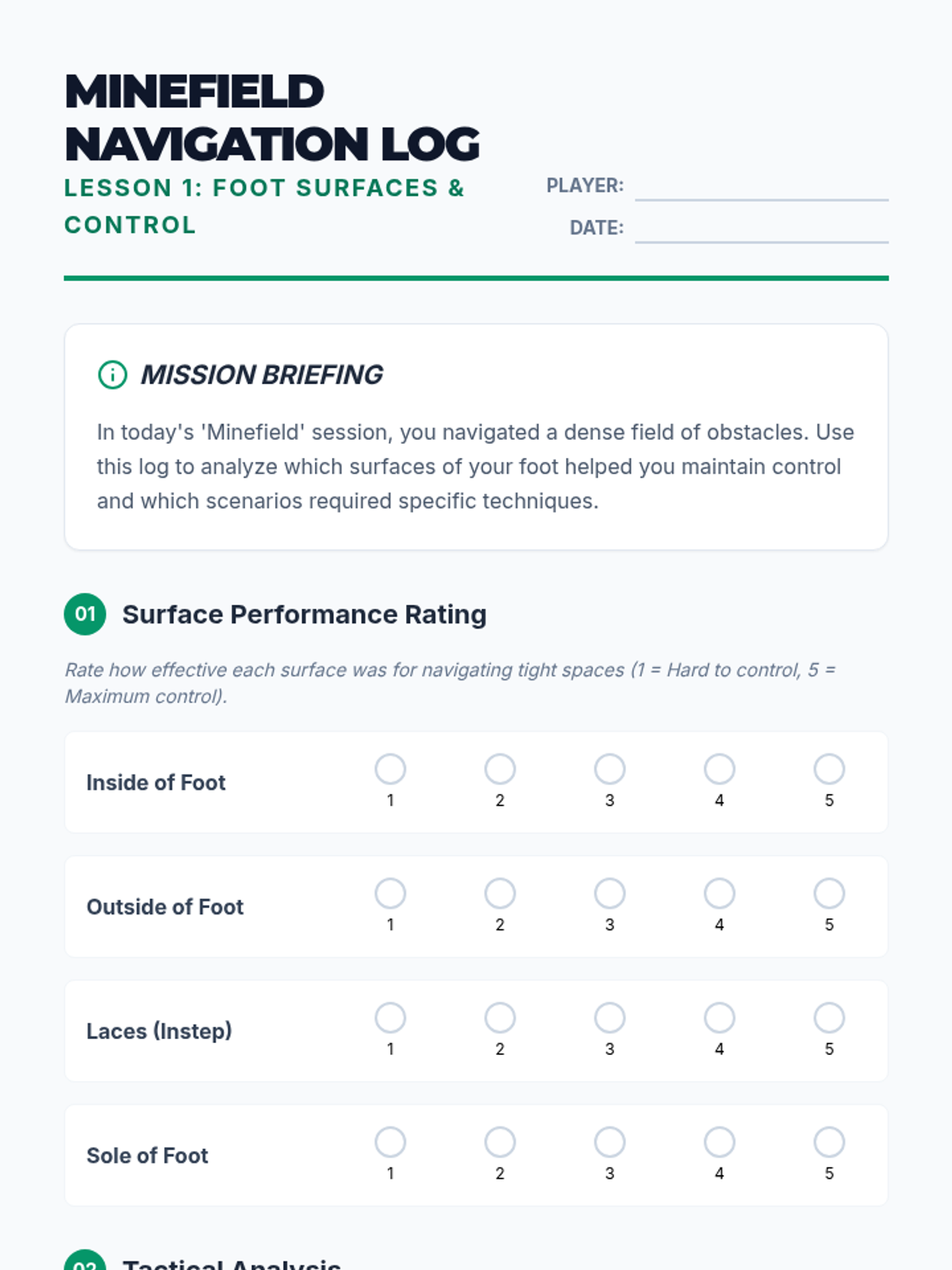 This high-performance football (soccer) unit focuses on technical mastery of ball control, dribbling, and retention. Students analyze the biomechanics of movement and apply deceptive feints and physical shielding to dominate in 1v1 scenarios.