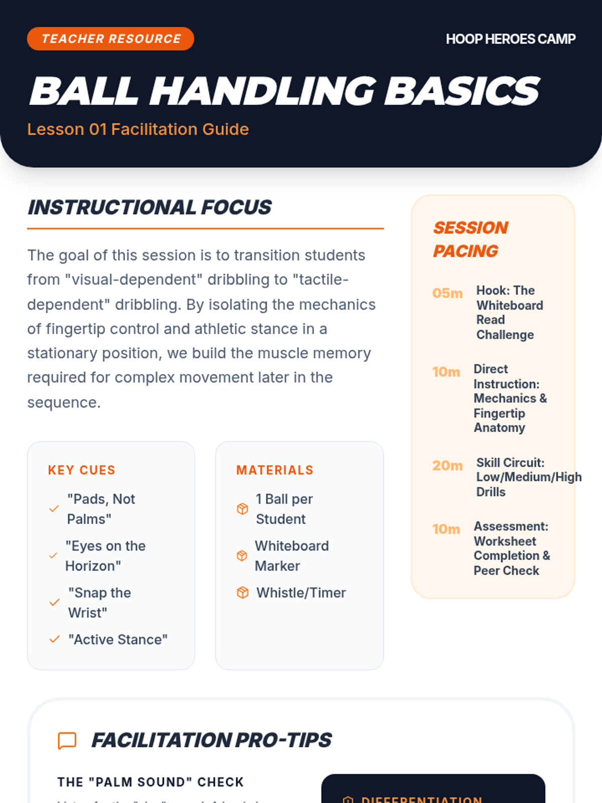 A comprehensive 5-lesson sequence for 6th-grade students focusing on the biomechanics of basketball, specifically ball handling and shooting mechanics using the B.E.E.F. principle. Students progress from stationary drills to dynamic movement and finishing techniques.