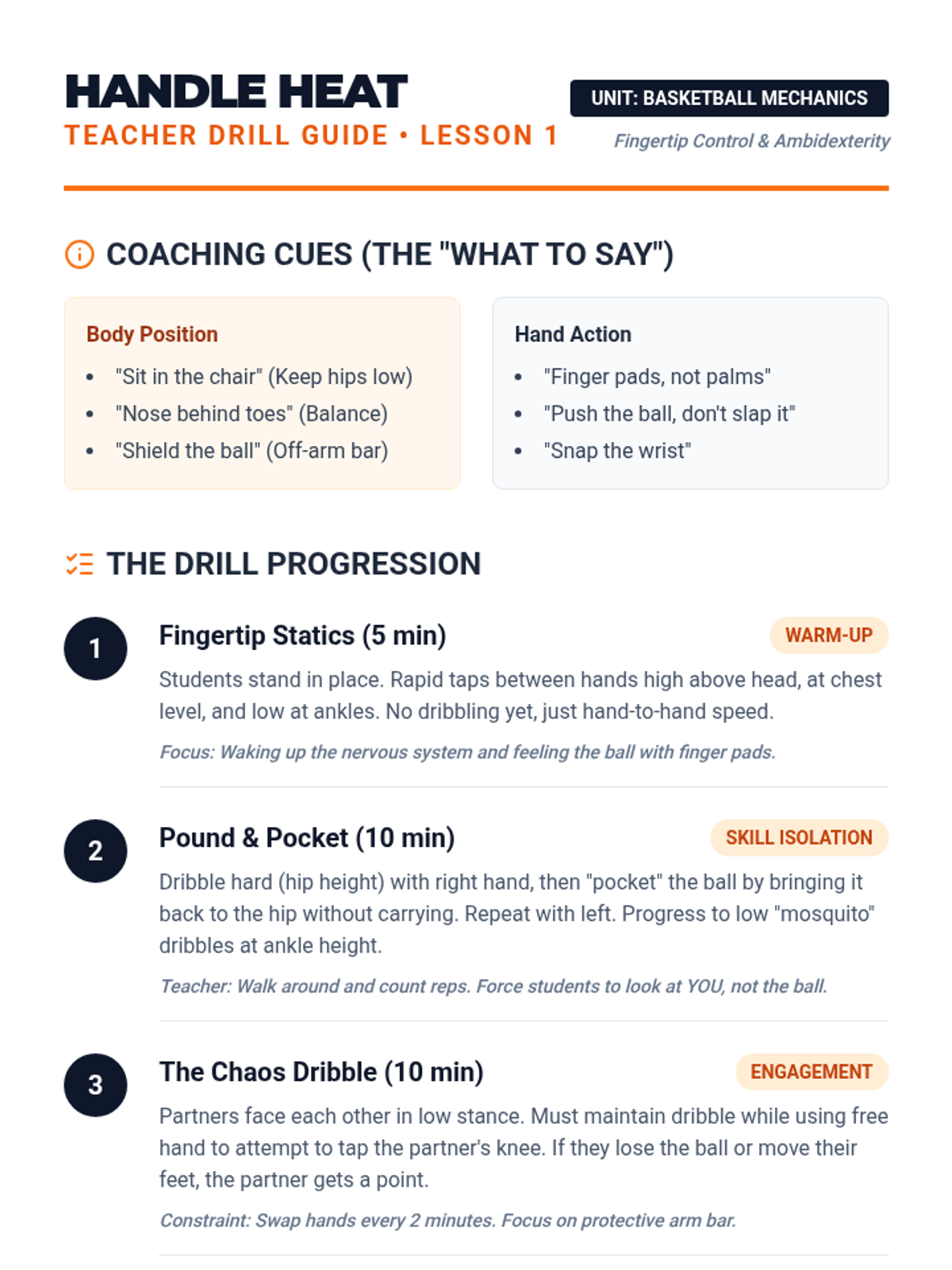 A comprehensive 7th-grade physical education unit focused on the biomechanics and technical precision of basketball fundamentals, including dribbling, passing, shooting, and layups.
