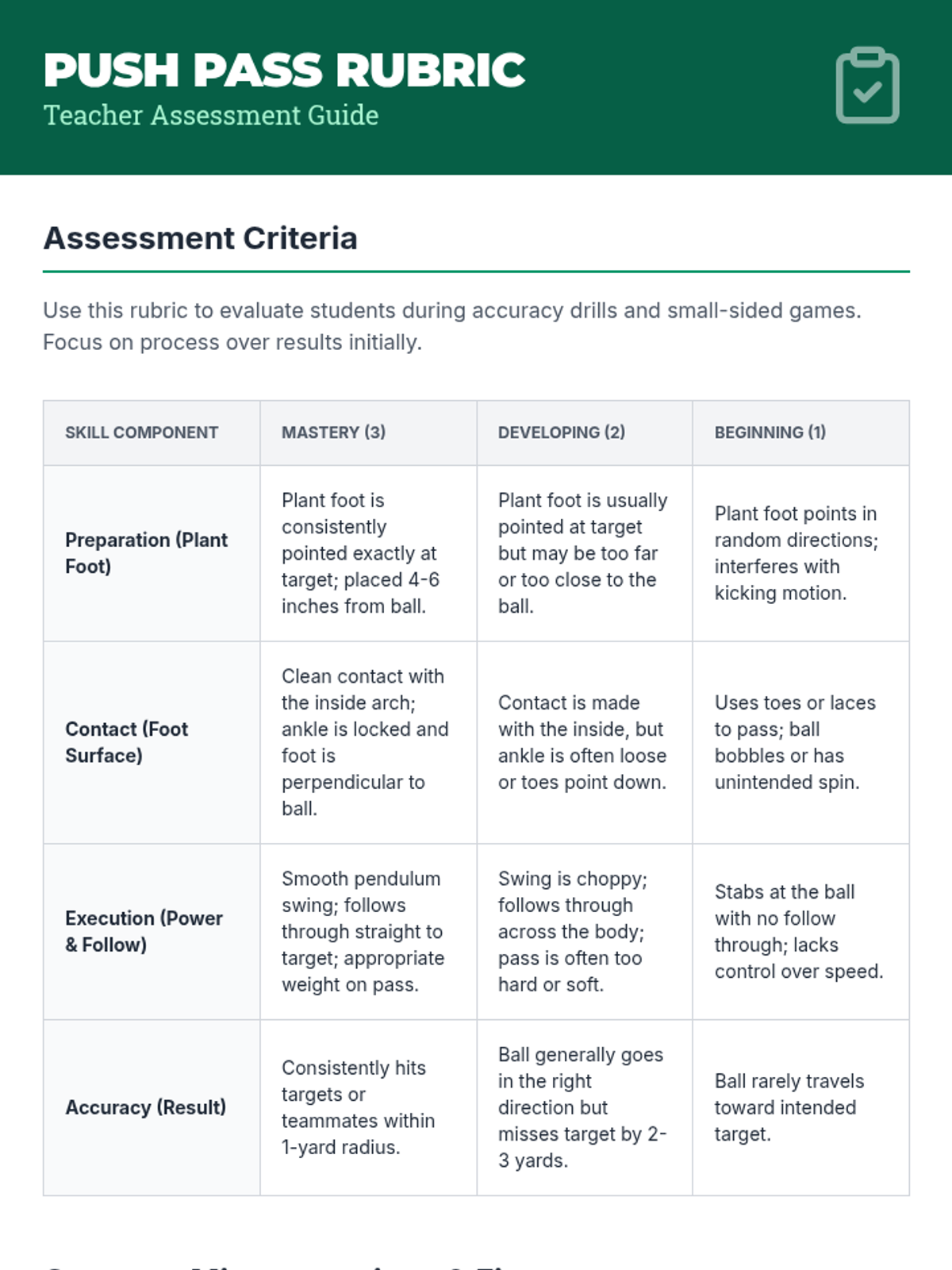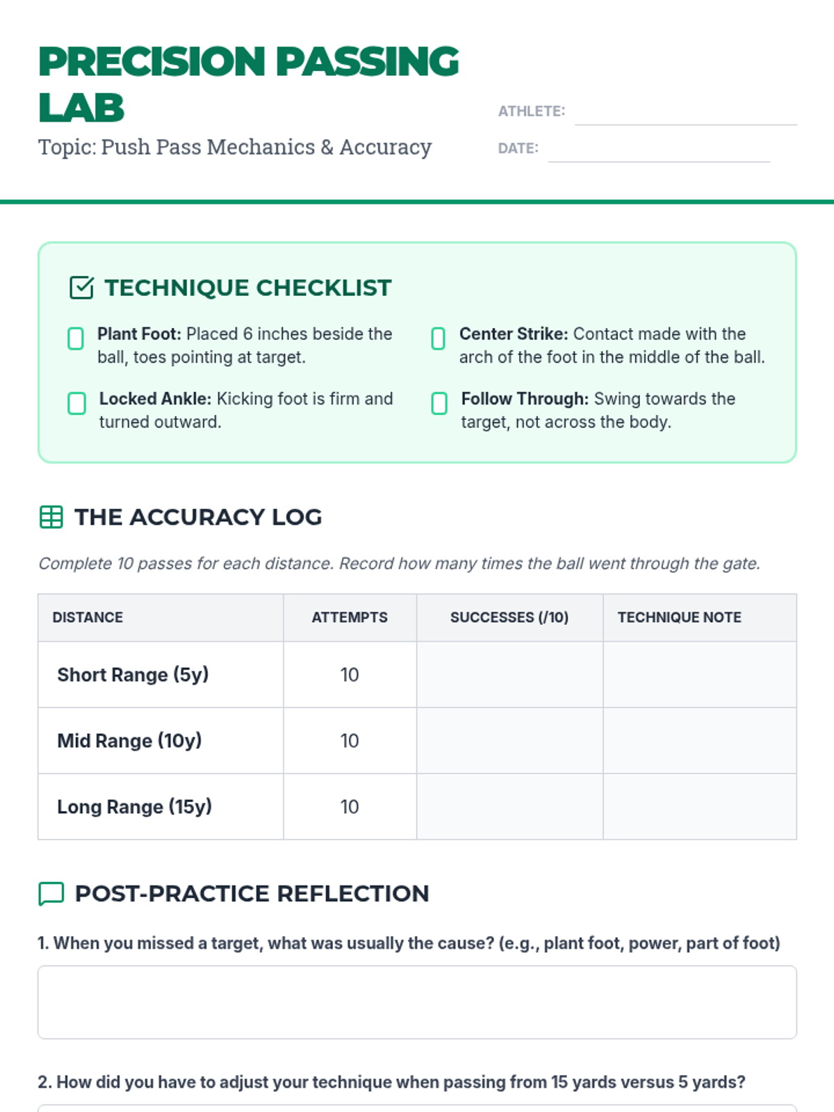 This unit moves students from individual technical mastery of the push pass and first touch to complex tactical application in combination play and possession games. Emphasis is placed on biomechanics, spatial awareness, and the 'language' of passing to build a cohesive team unit.