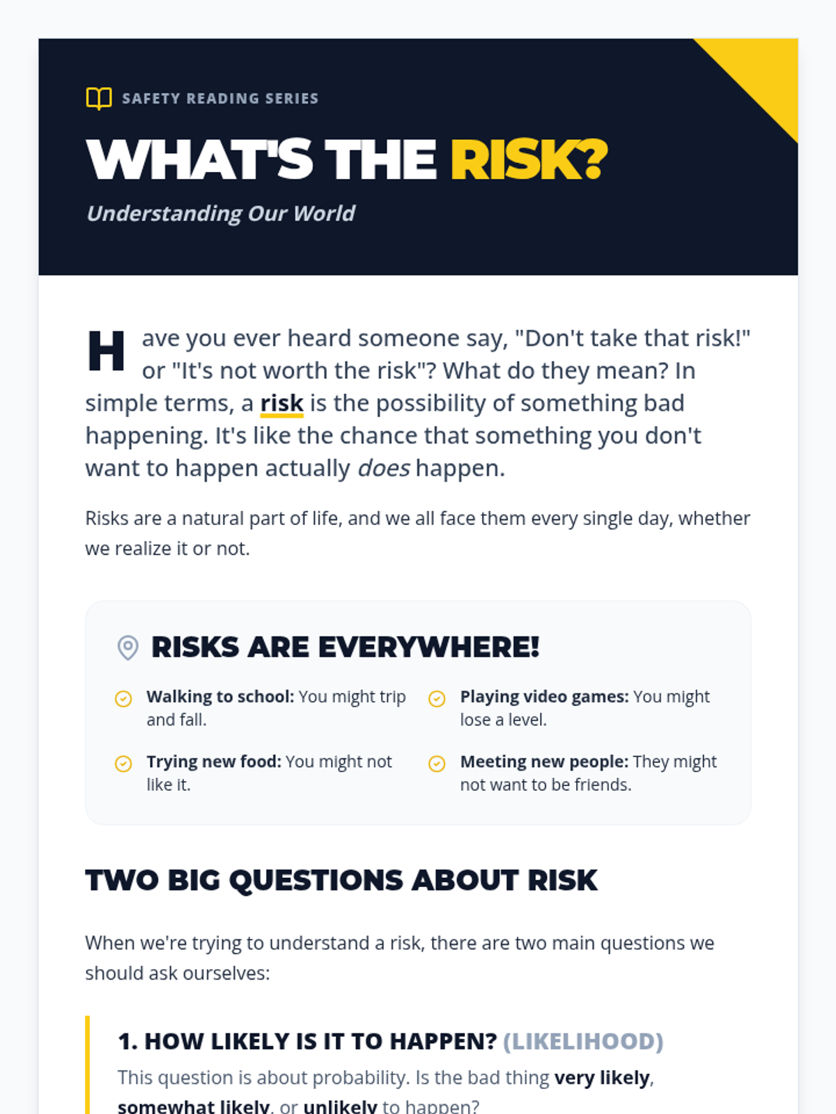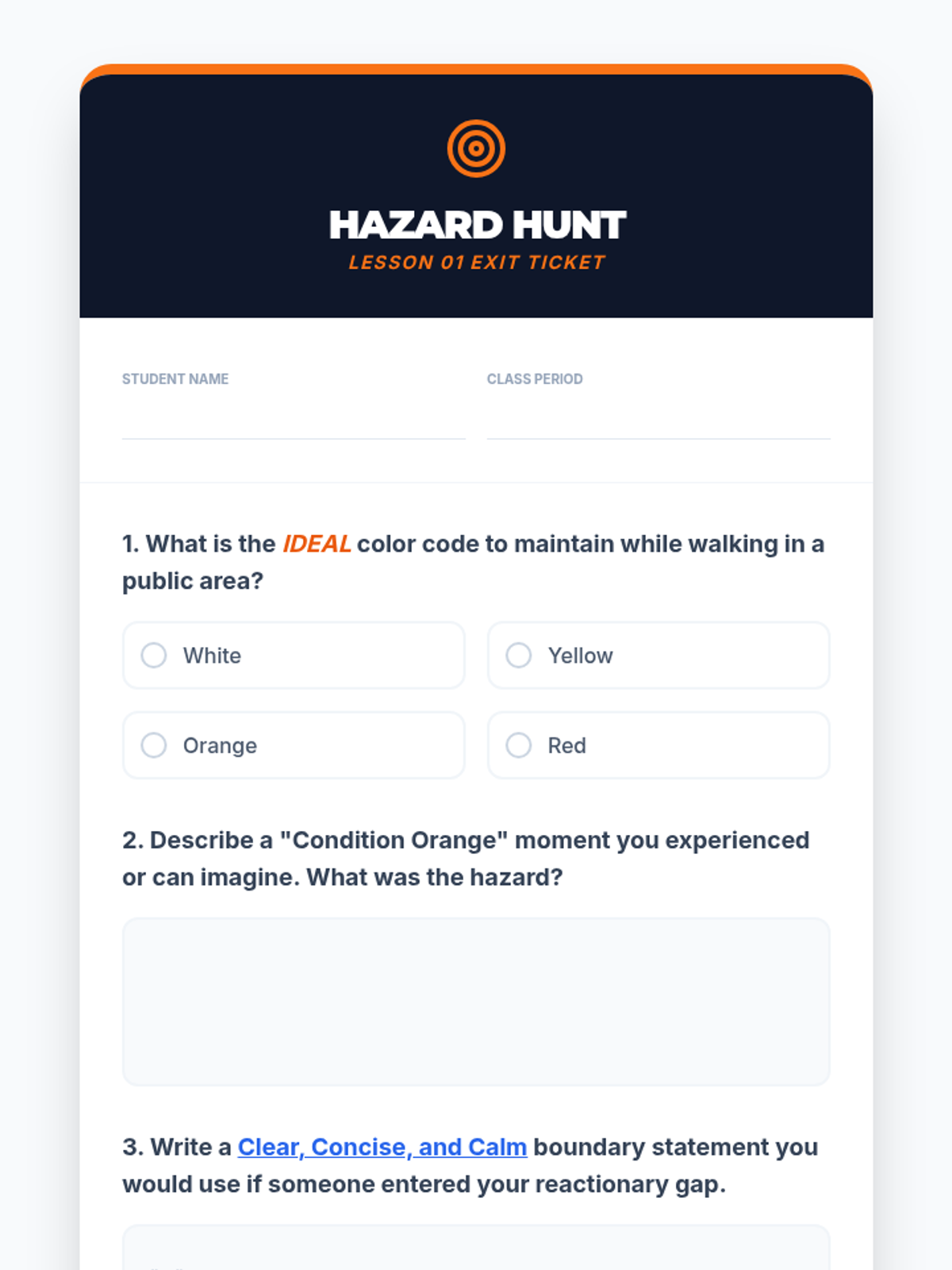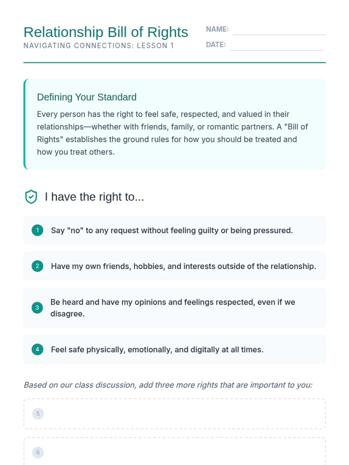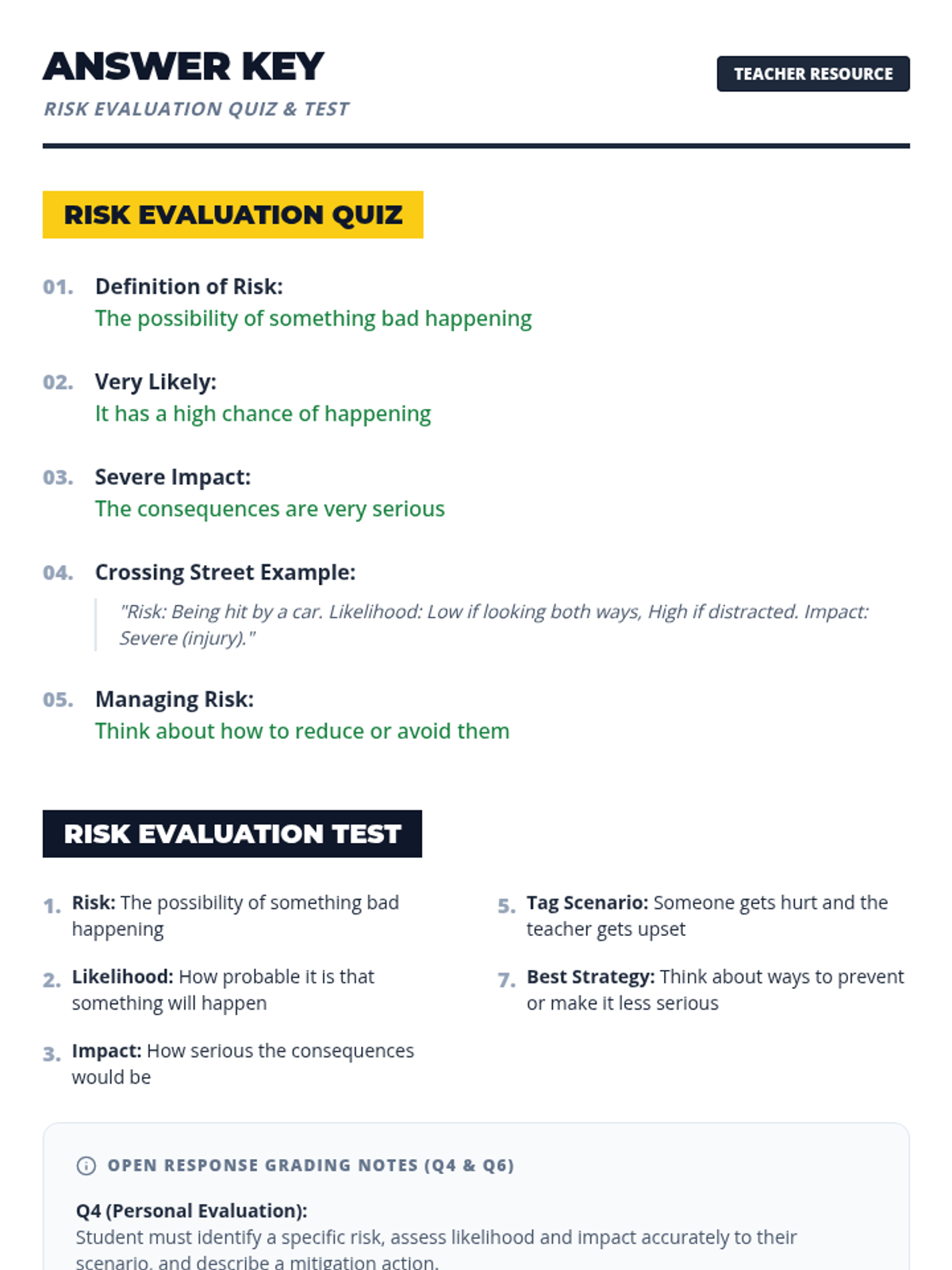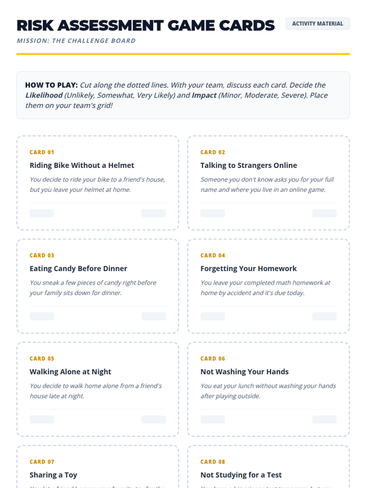 Personal boundaries, emergency response protocols, and digital security measures for physical and online environments. Equips students to recognize unsafe situations, navigate conflict, and understand risks associated with trafficking, fire, and water safety.