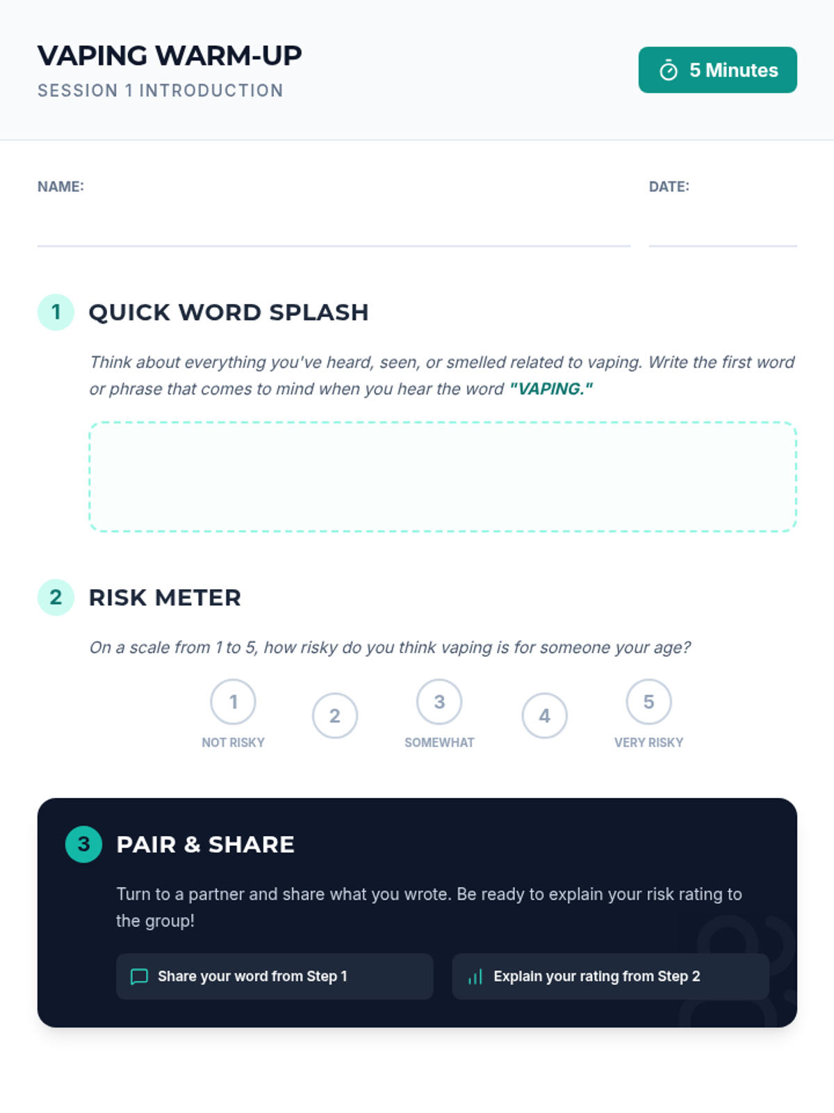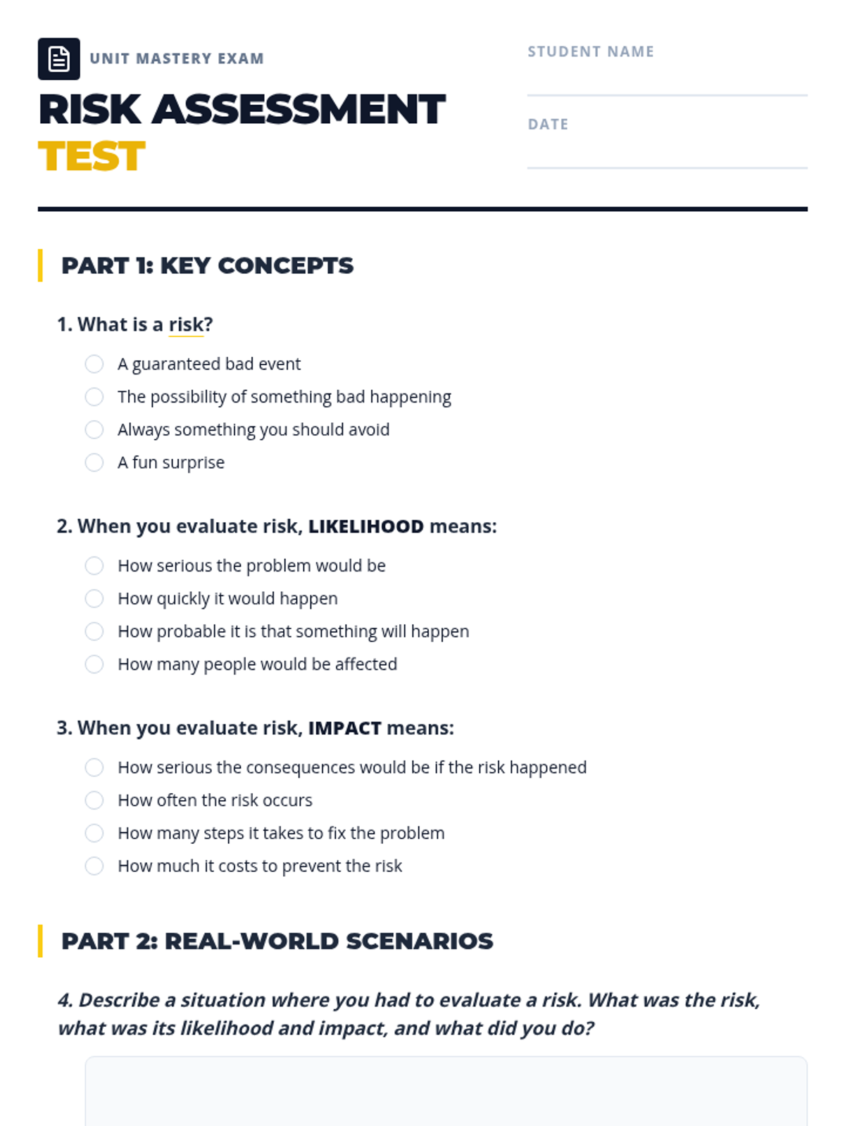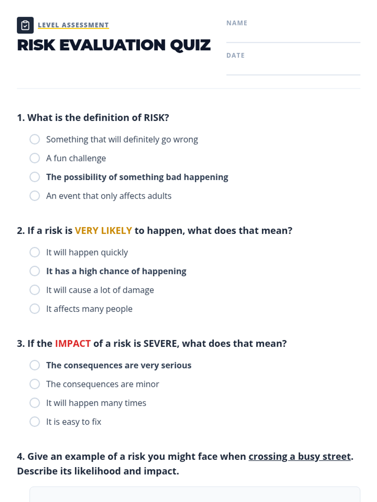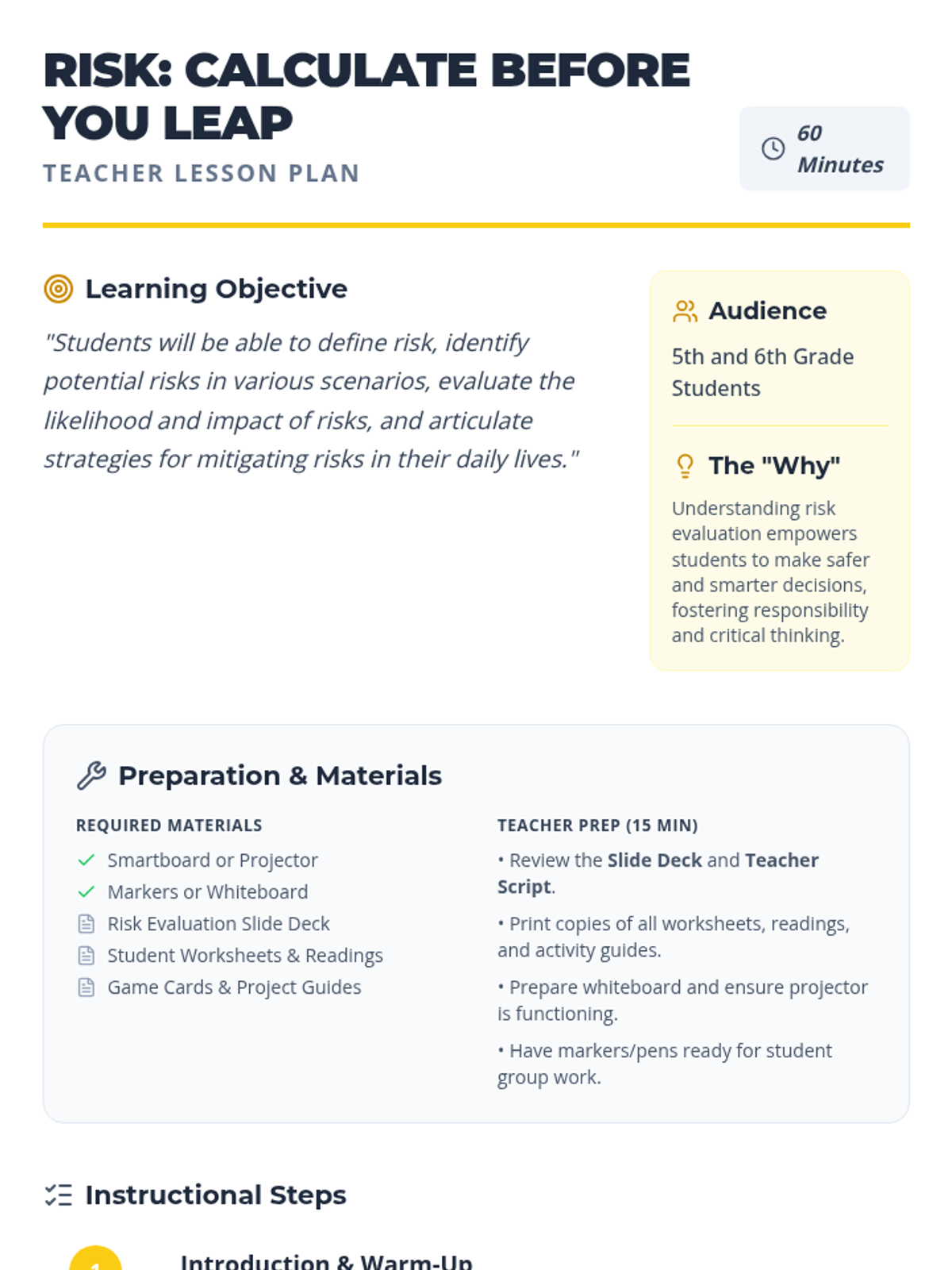 Personal boundaries, emergency response protocols, and digital security measures for physical and online environments. Equips students to recognize unsafe situations, navigate conflict, and understand risks associated with trafficking, fire, and water safety.