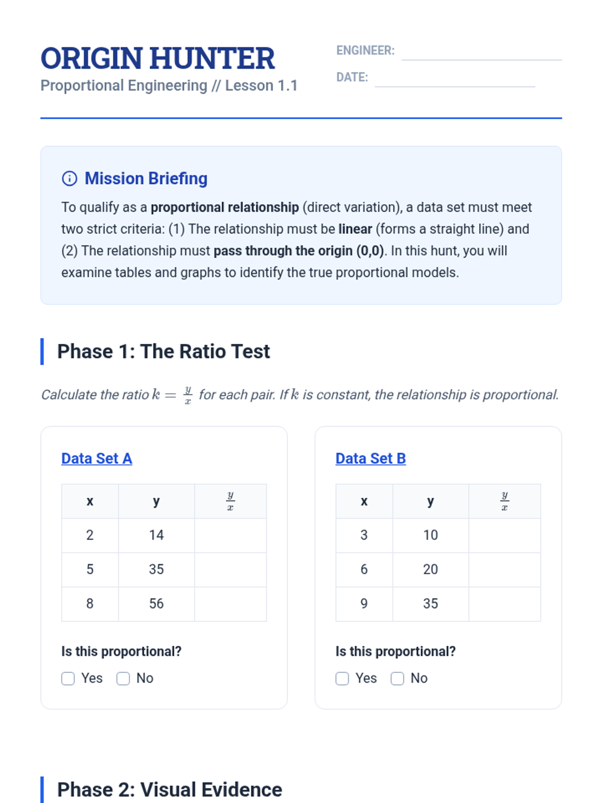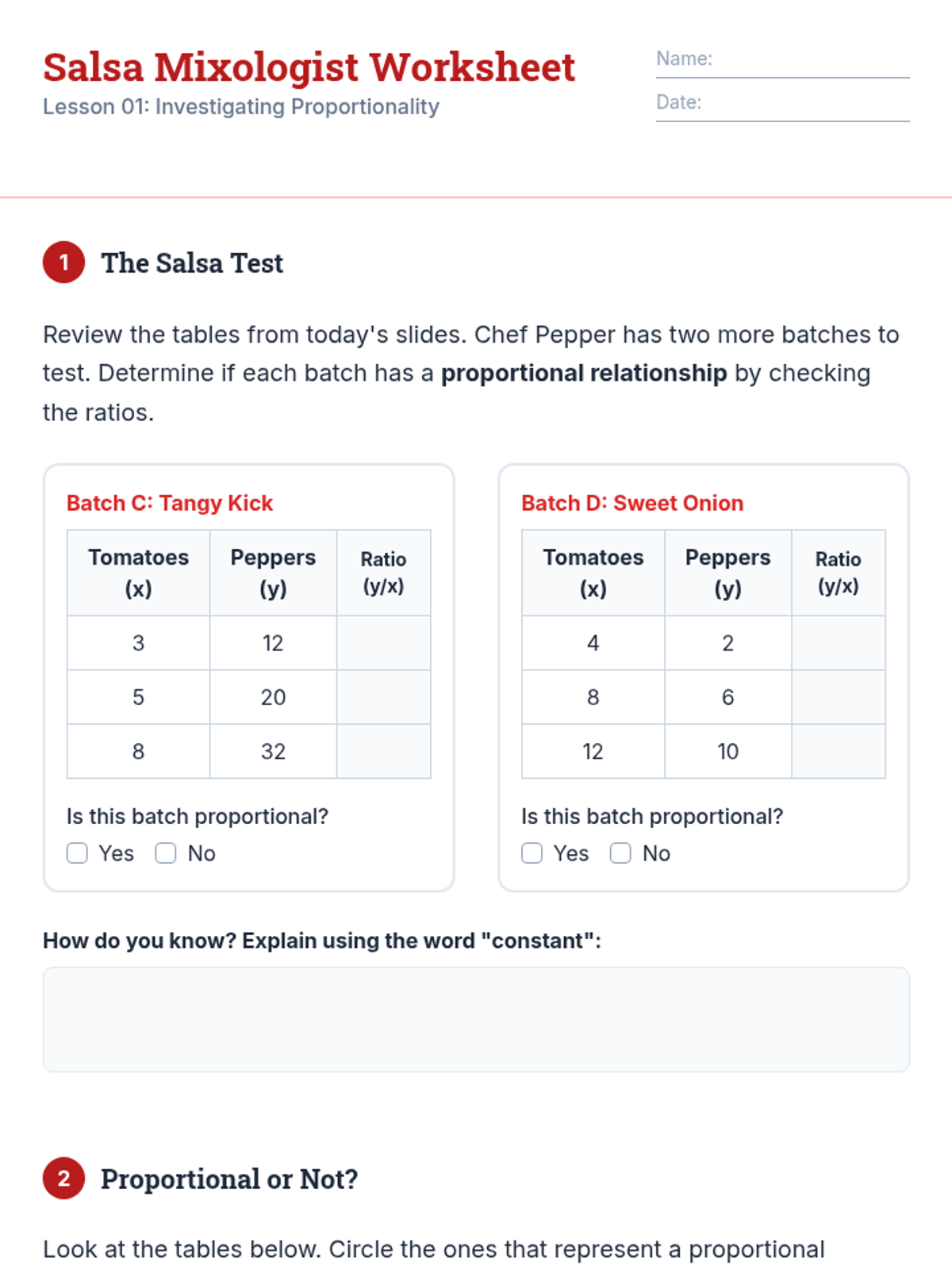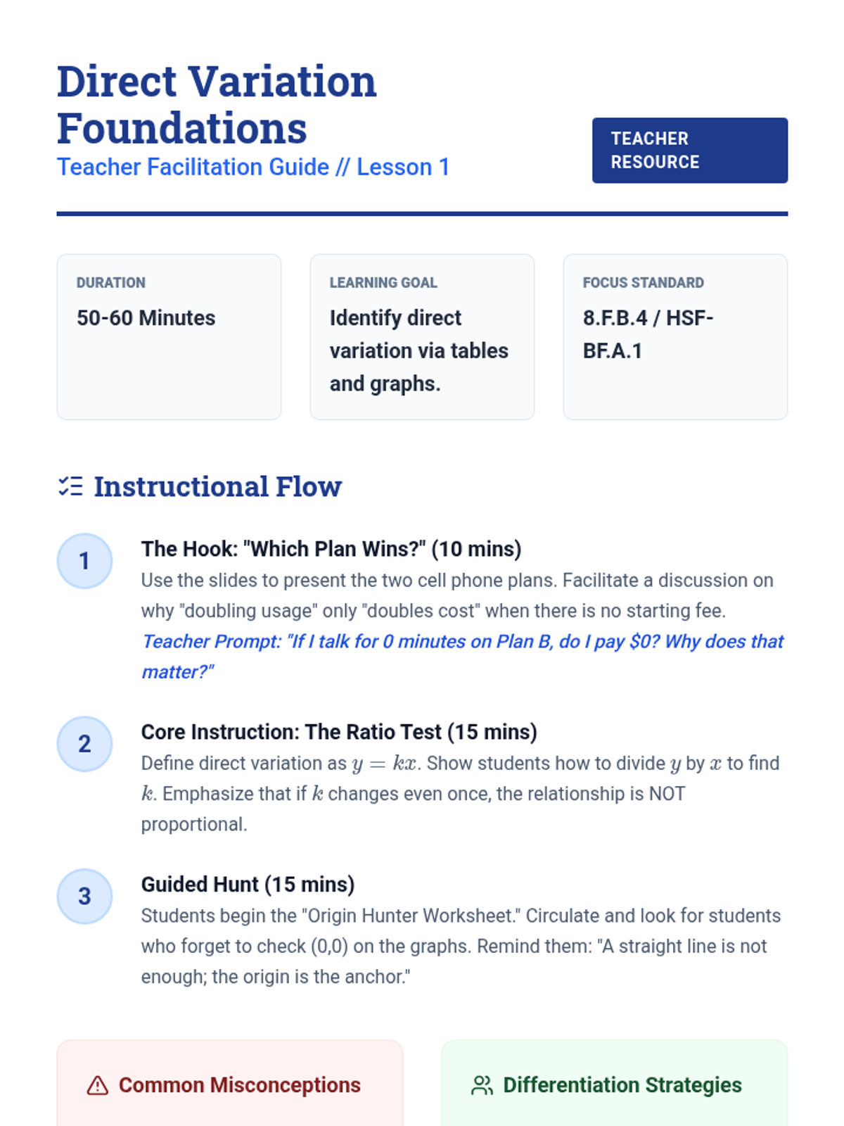 Proportional Relationships and Linear EquationsConnects ratios, unit rates, and linear functions through graphing and algebraic modeling. Links the constant of proportionality to the slope of a line in both mathematical and real-world contexts.