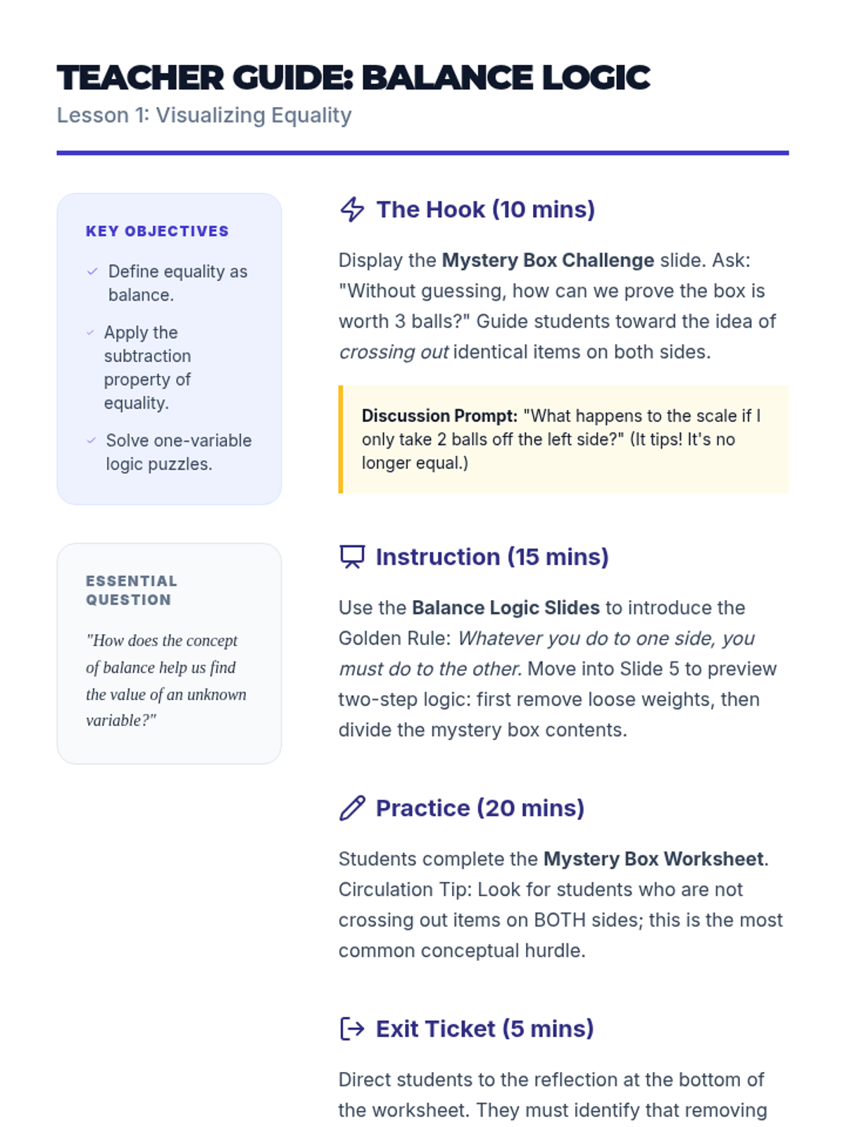 A comprehensive small-group intervention toolkit designed to help students master multi-step equations through scaffolded practice, error analysis, and real-world translation.