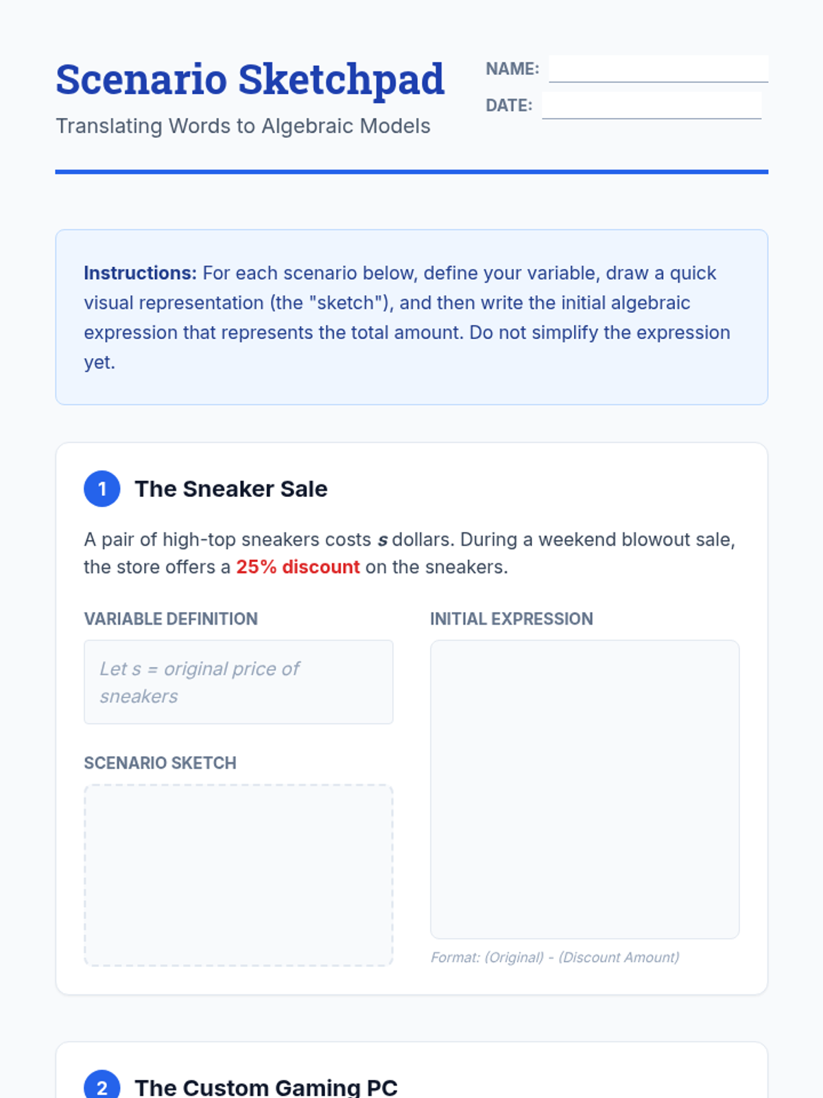 This inquiry-based sequence utilizes geometric area models to conceptualize the distributive property. Students move from concrete arithmetic to abstract algebraic manipulation, eventually fluently expanding linear expressions with rational coefficients.