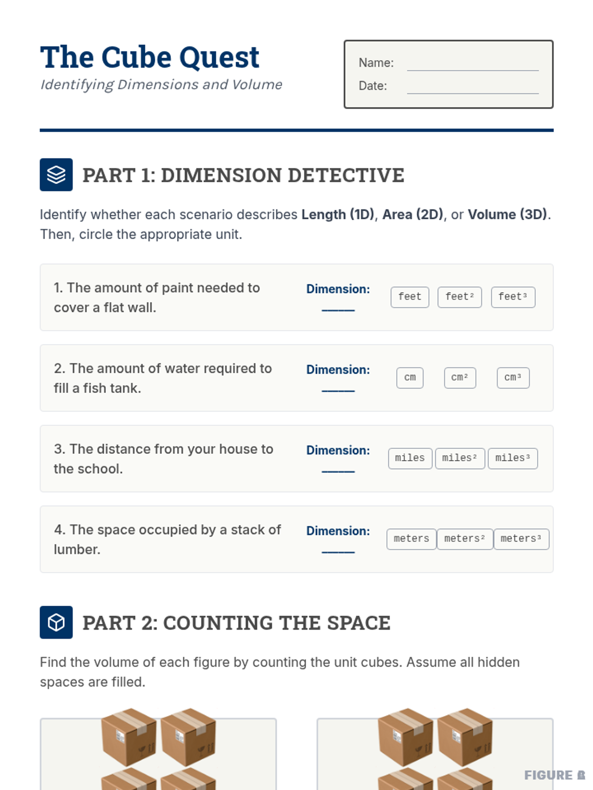 This sequence introduces 7th-grade students to the concept of volume through the lens of rectangular prisms. Starting with concrete unit cube packing and moving toward abstract formulas including fractional edge lengths and the 'Base Area' method, students build a deep conceptual understanding of 3D space measurement.