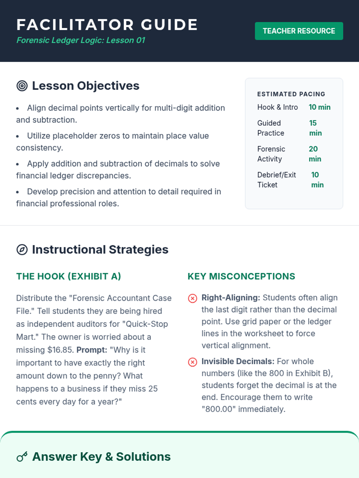 A comprehensive 6th-grade math sequence that teaches decimal operations through the real-world lens of financial literacy, culminating in a complex event planning budget challenge.