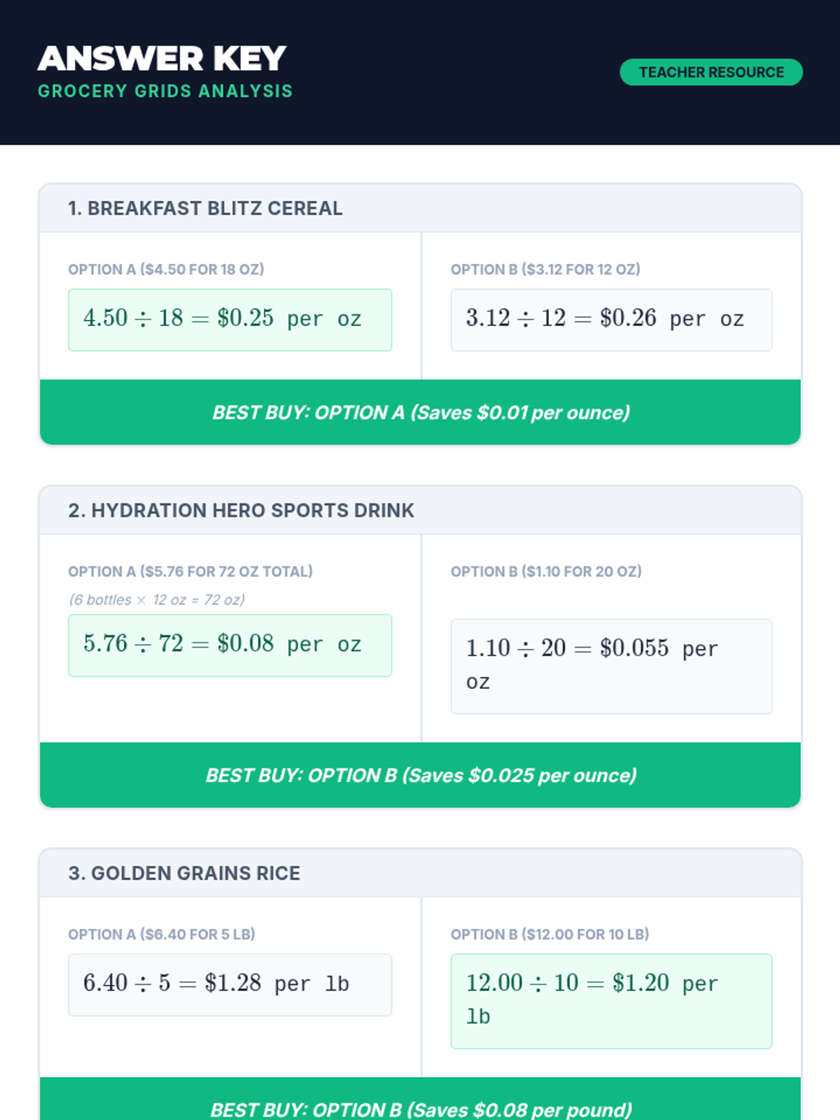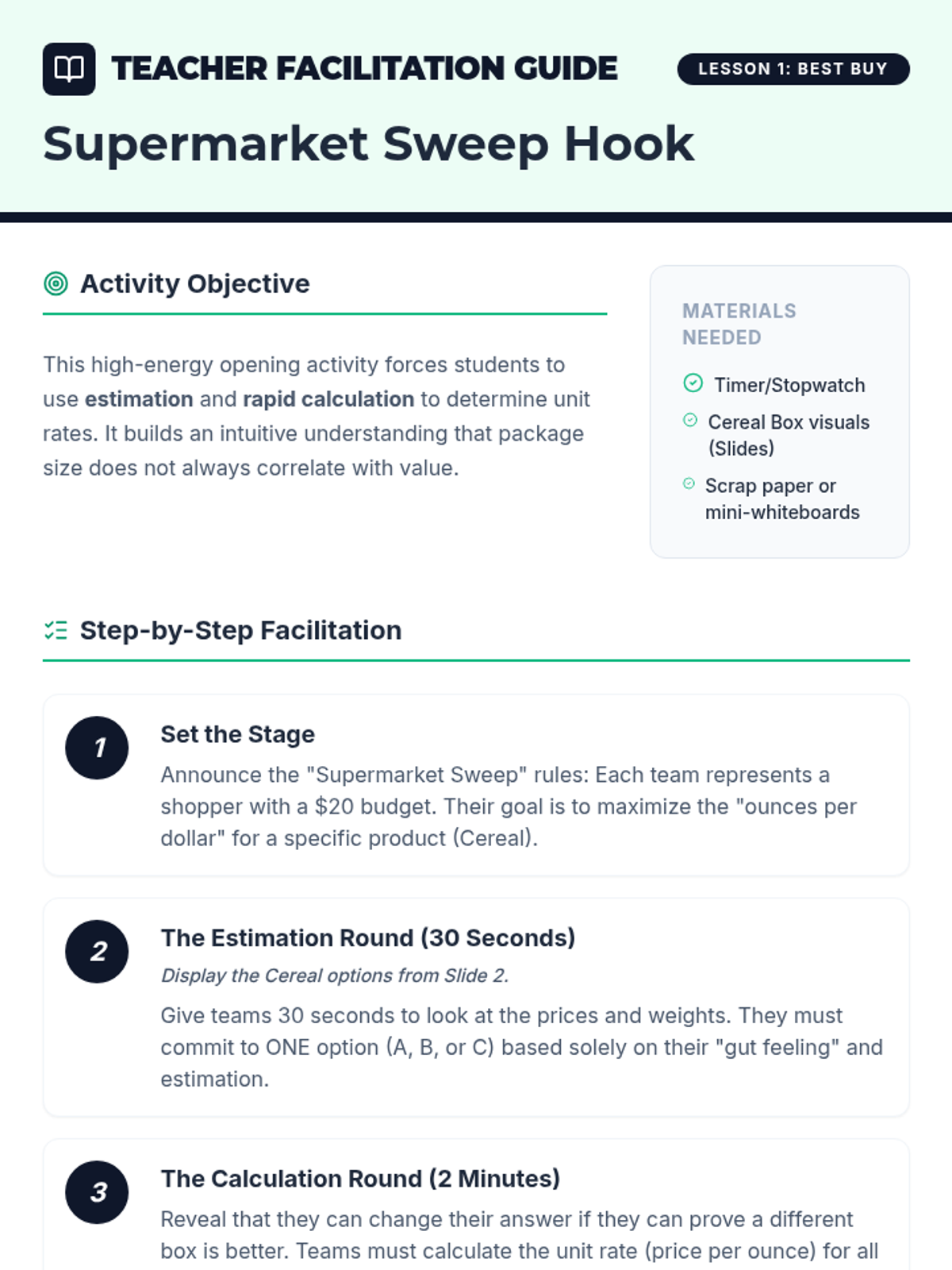 This sequence empowers students to become savvy consumers through the lens of proportional relationships. They will master unit rates, compare mixed representations, and apply their skills to real-world financial decisions.