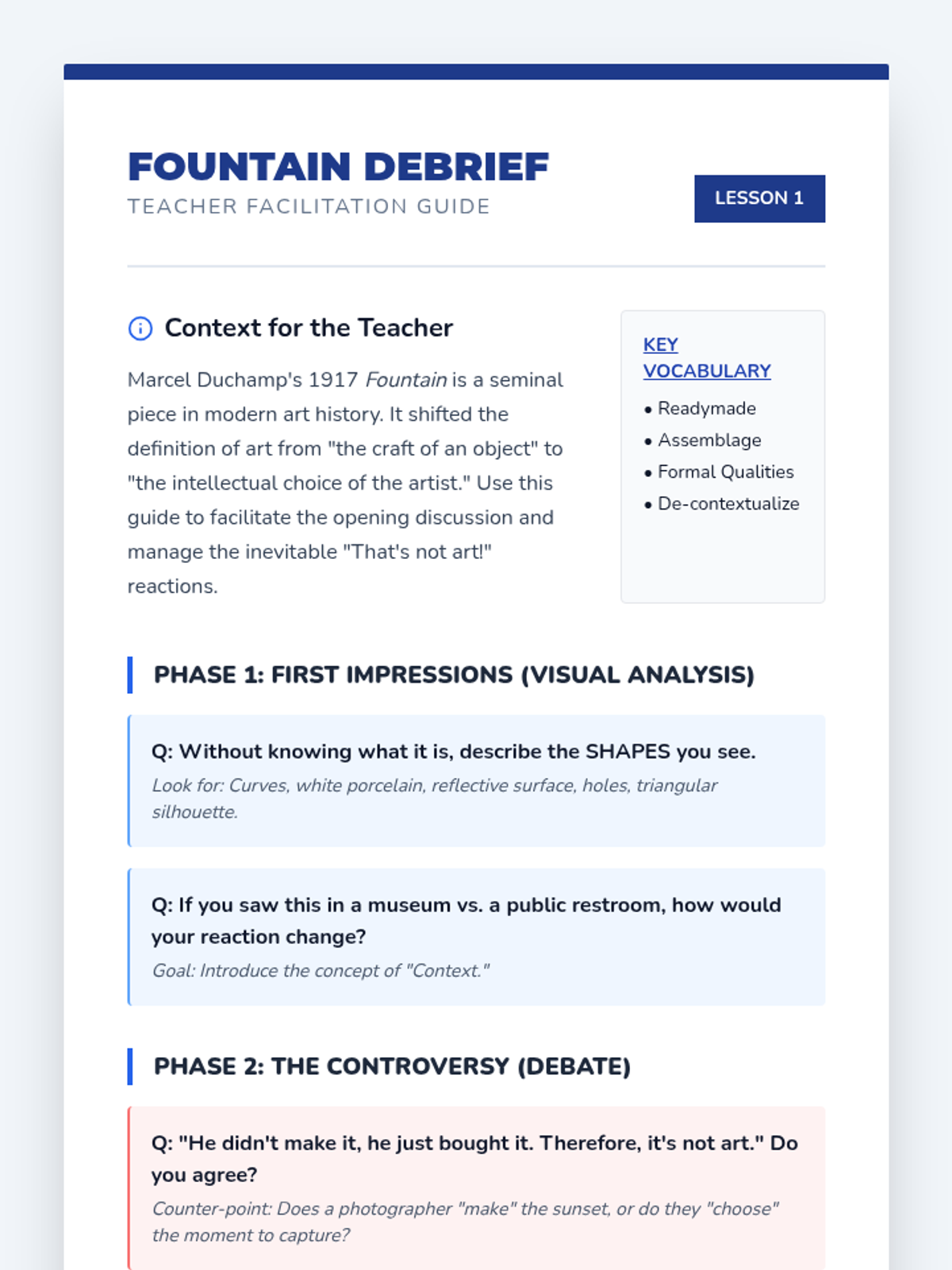 A single-session lesson for 8th-grade students exploring how visual arts reflect and shape cultural and societal contexts through historical and contemporary examples.