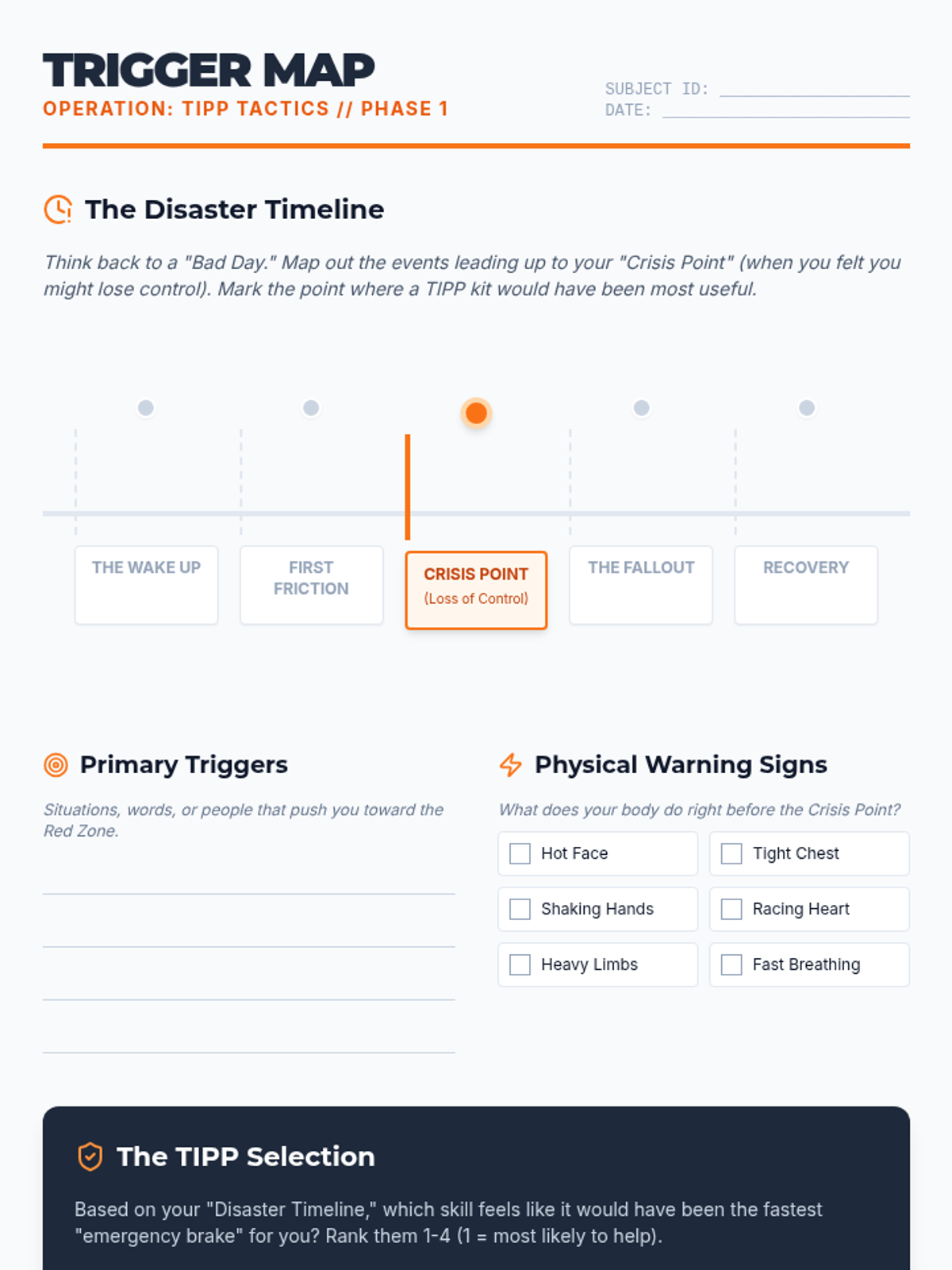 A project-based sequence where 8th-grade students learn and personalize TIPP crisis survival skills, culminating in the creation of a physical or digital Crisis Survival Kit. Students assess triggers, brainstorm school-appropriate strategies, and script guided exercises for emotional regulation.