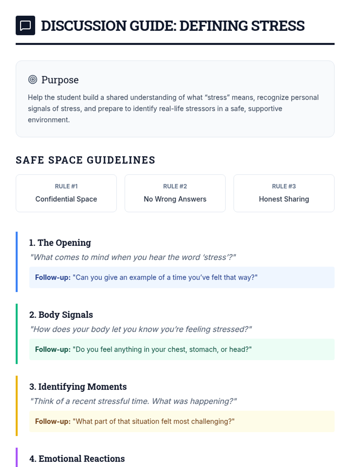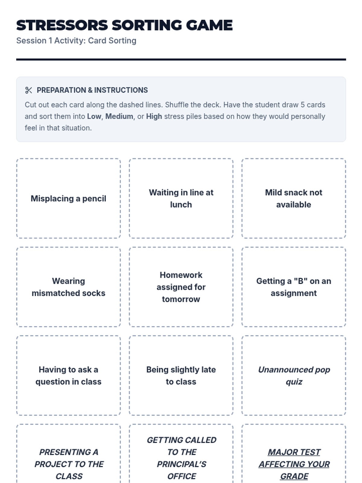 A comprehensive workshop sequence designed for parents and caregivers to understand and manage stress, identify stress signals in children, and implement practical coping strategies at home.