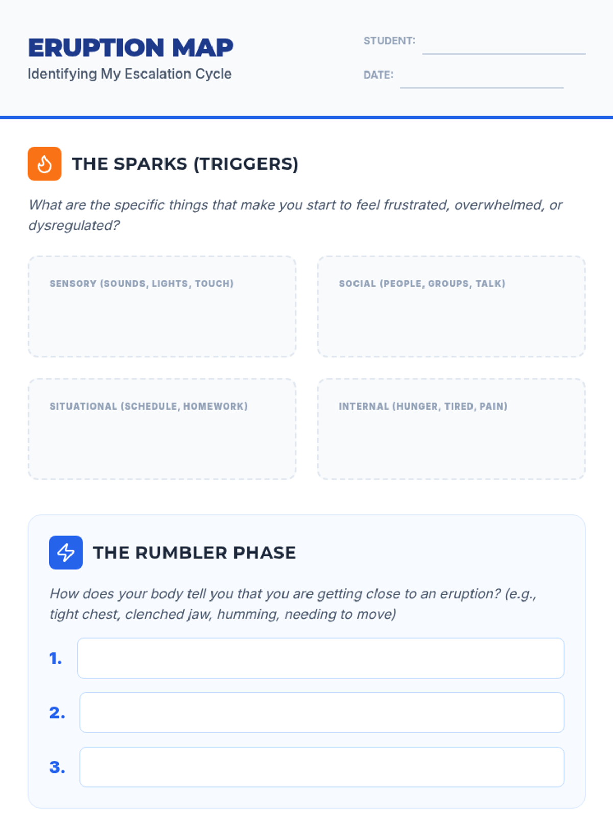 A specialized sequence for 8th-grade students to master their personal calming routines by understanding the escalation cycle. Students progress from mapping their own emotional patterns to simulating high-stress middle school scenarios, building the 'muscle memory' needed for real-time self-regulation.