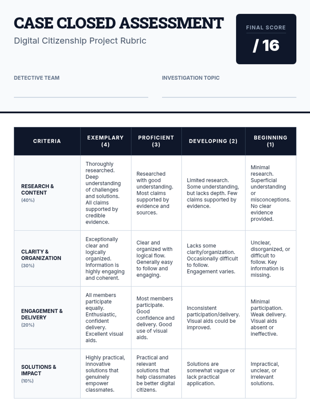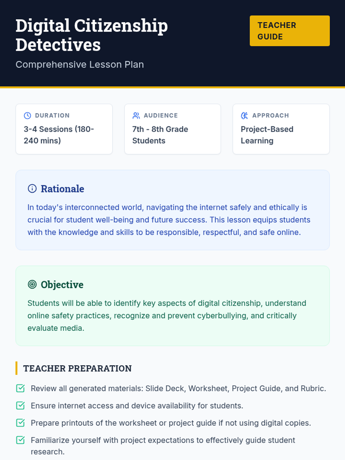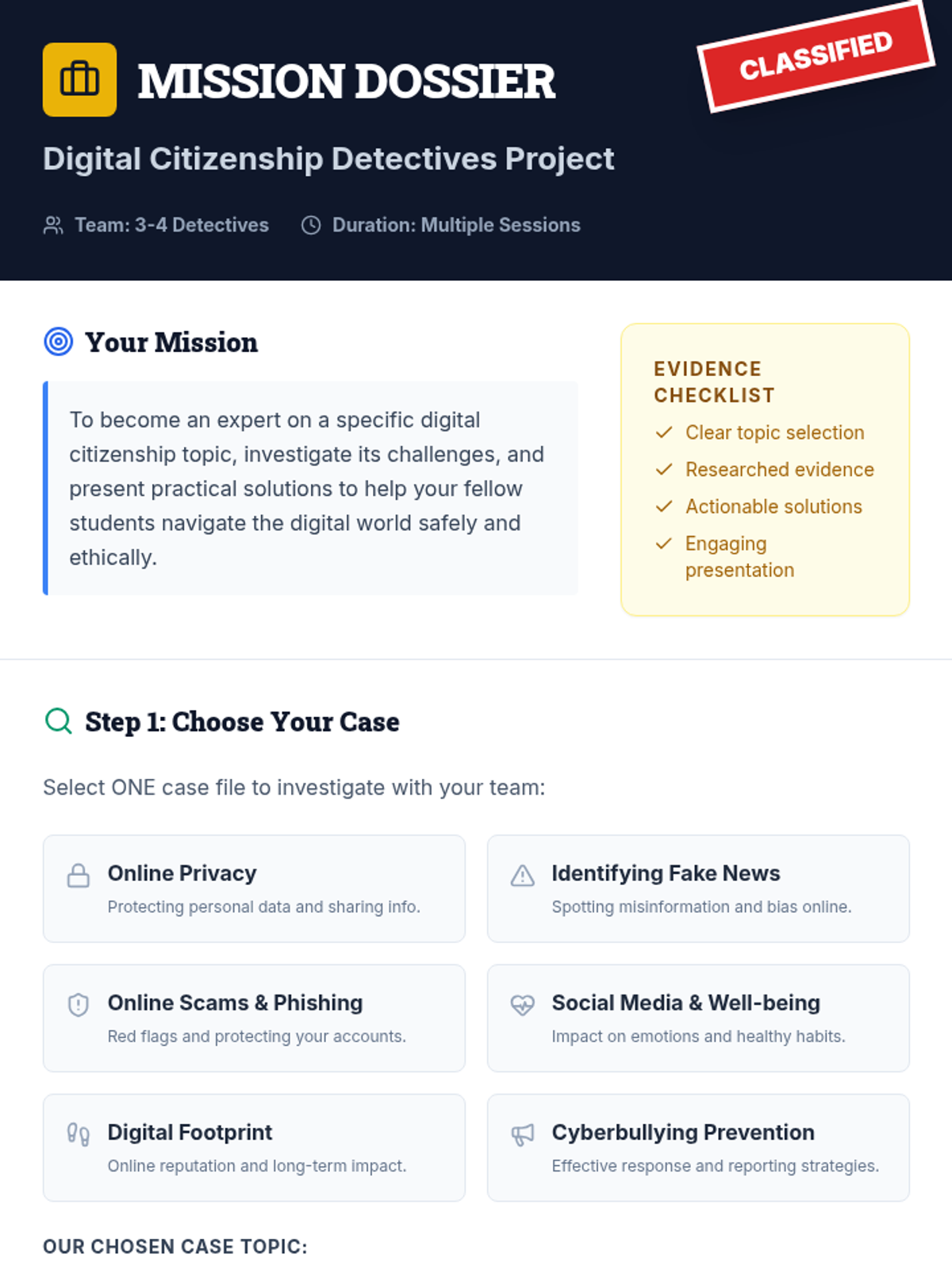 A comprehensive project-based unit that empowers students to navigate the digital world safely and ethically through collaborative research and investigation.