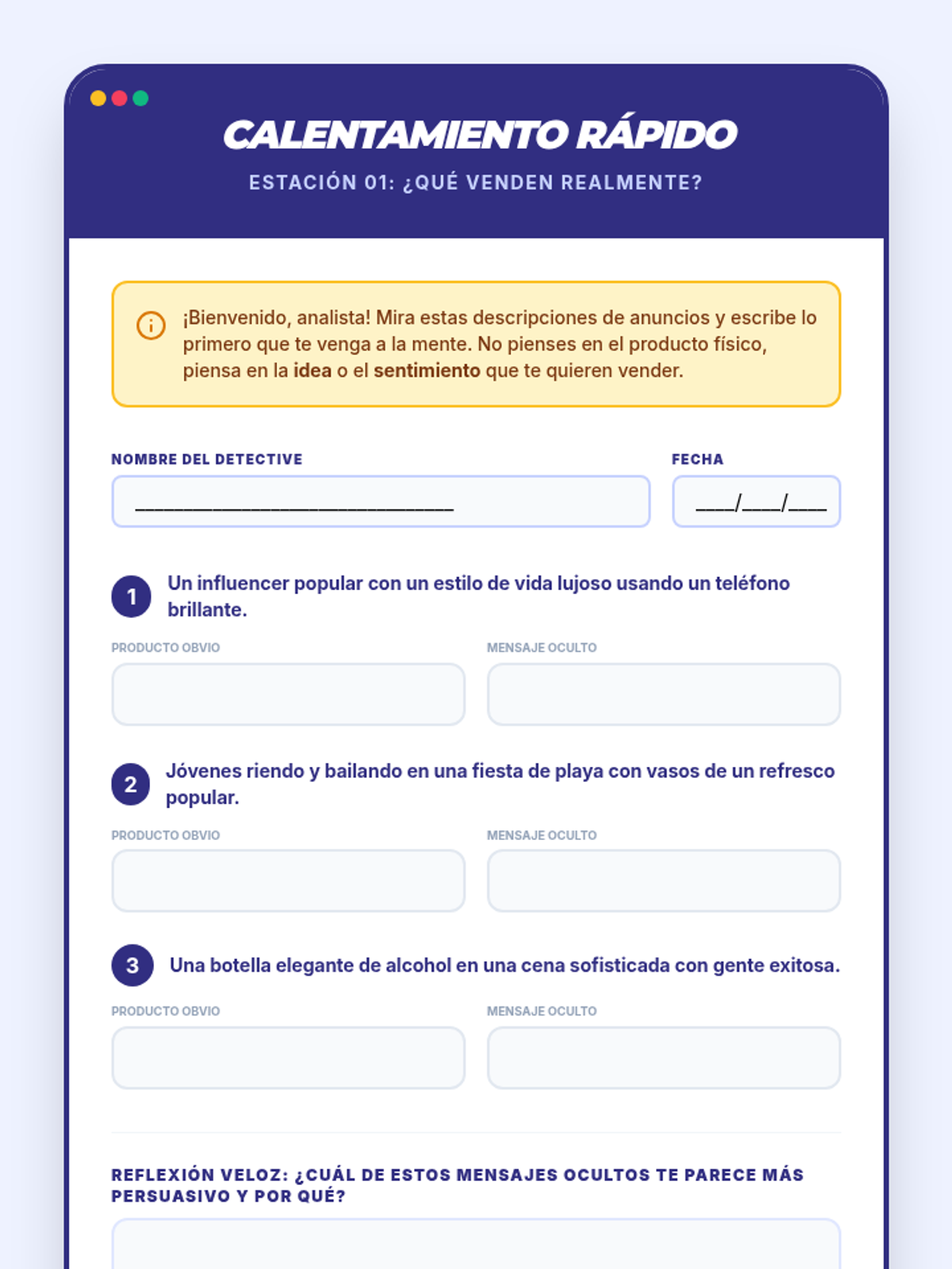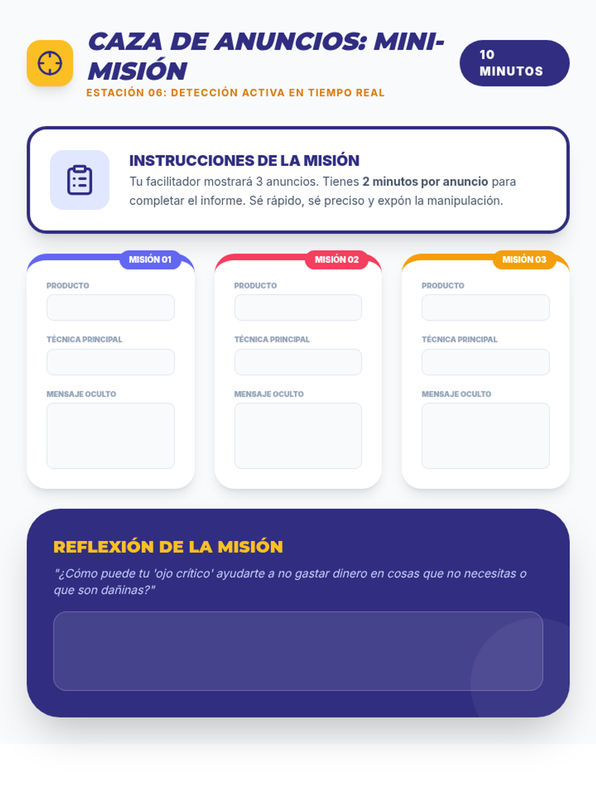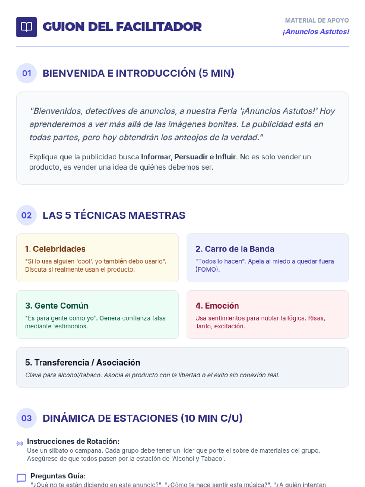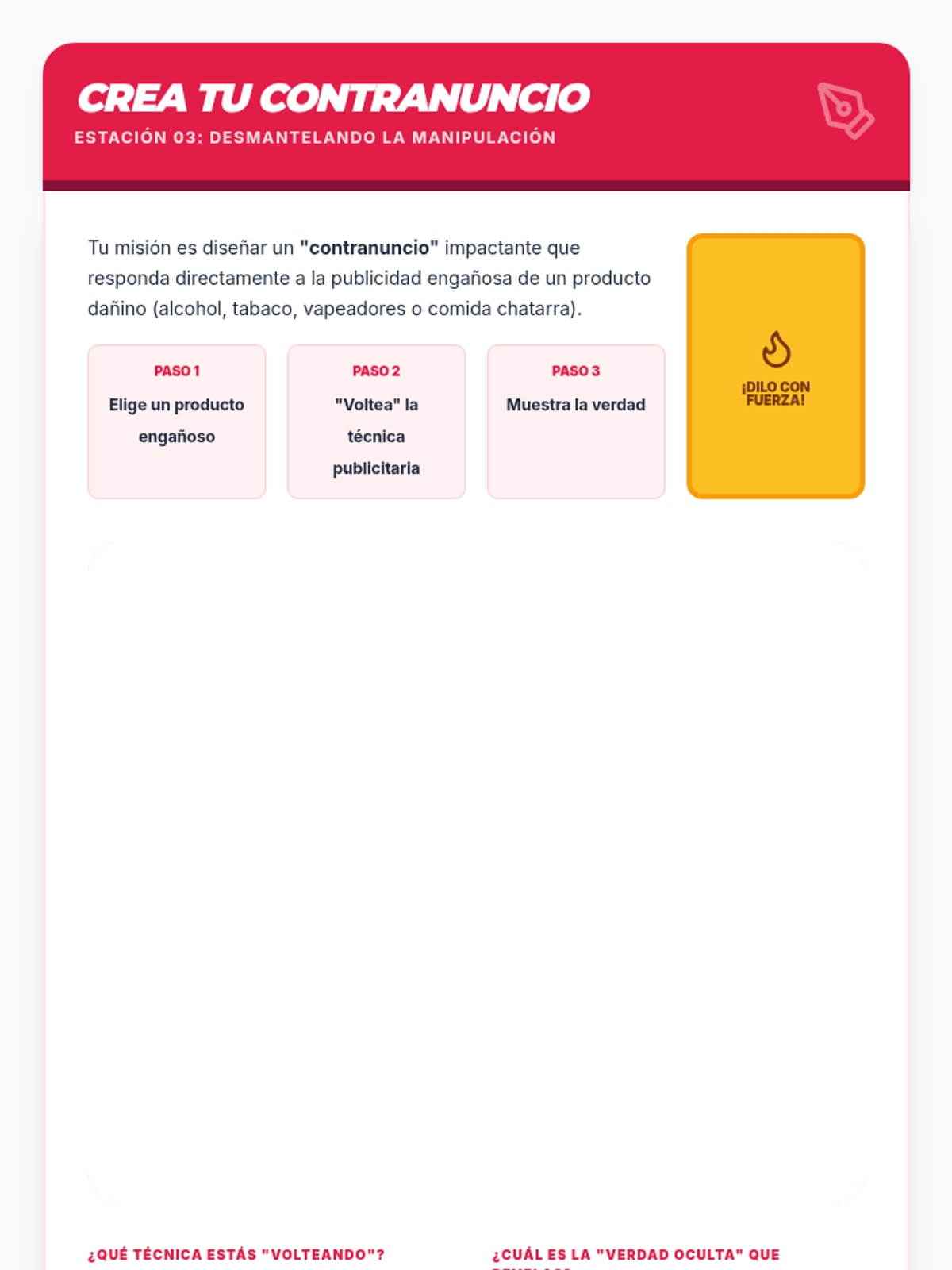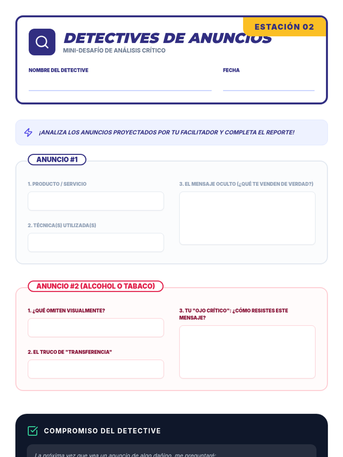 Una secuencia educativa diseñada para empoderar a estudiantes de secundaria en la alfabetización mediática, enfocándose en desmantelar las tácticas de persuasión de la publicidad, especialmente en productos de alcohol y tabaco.