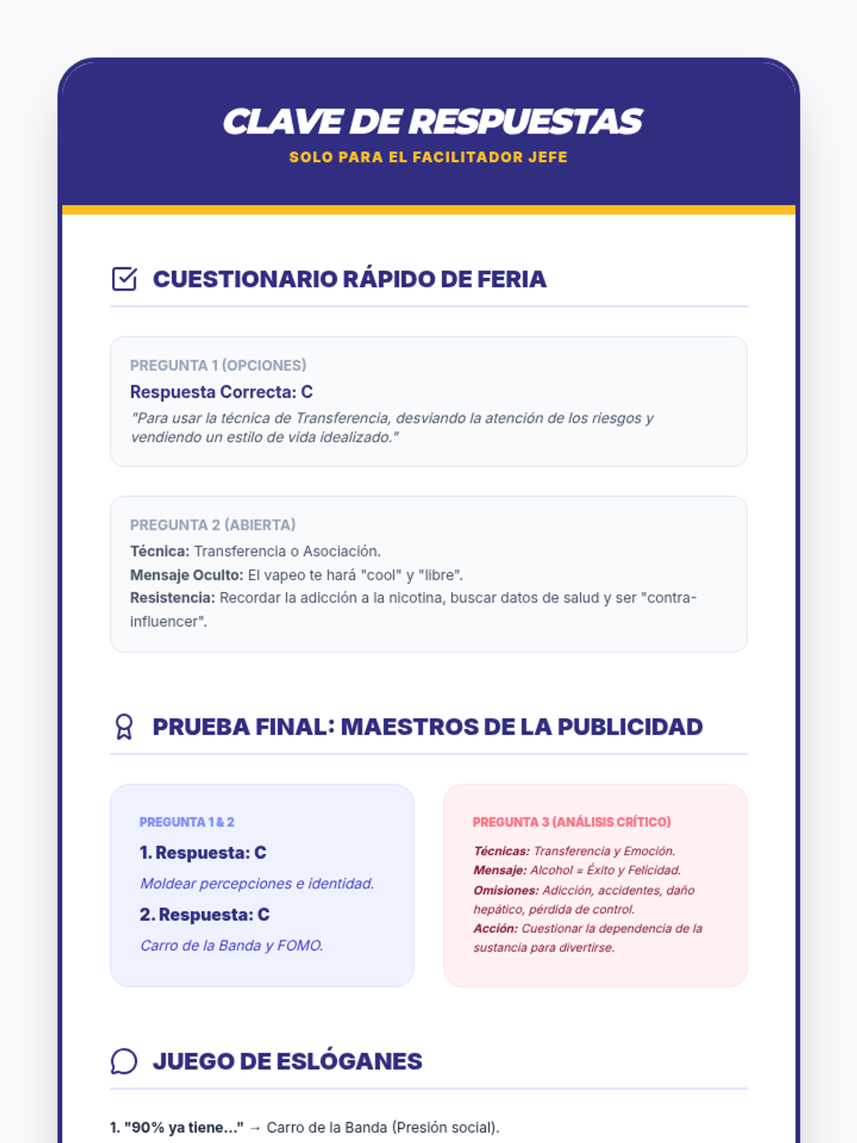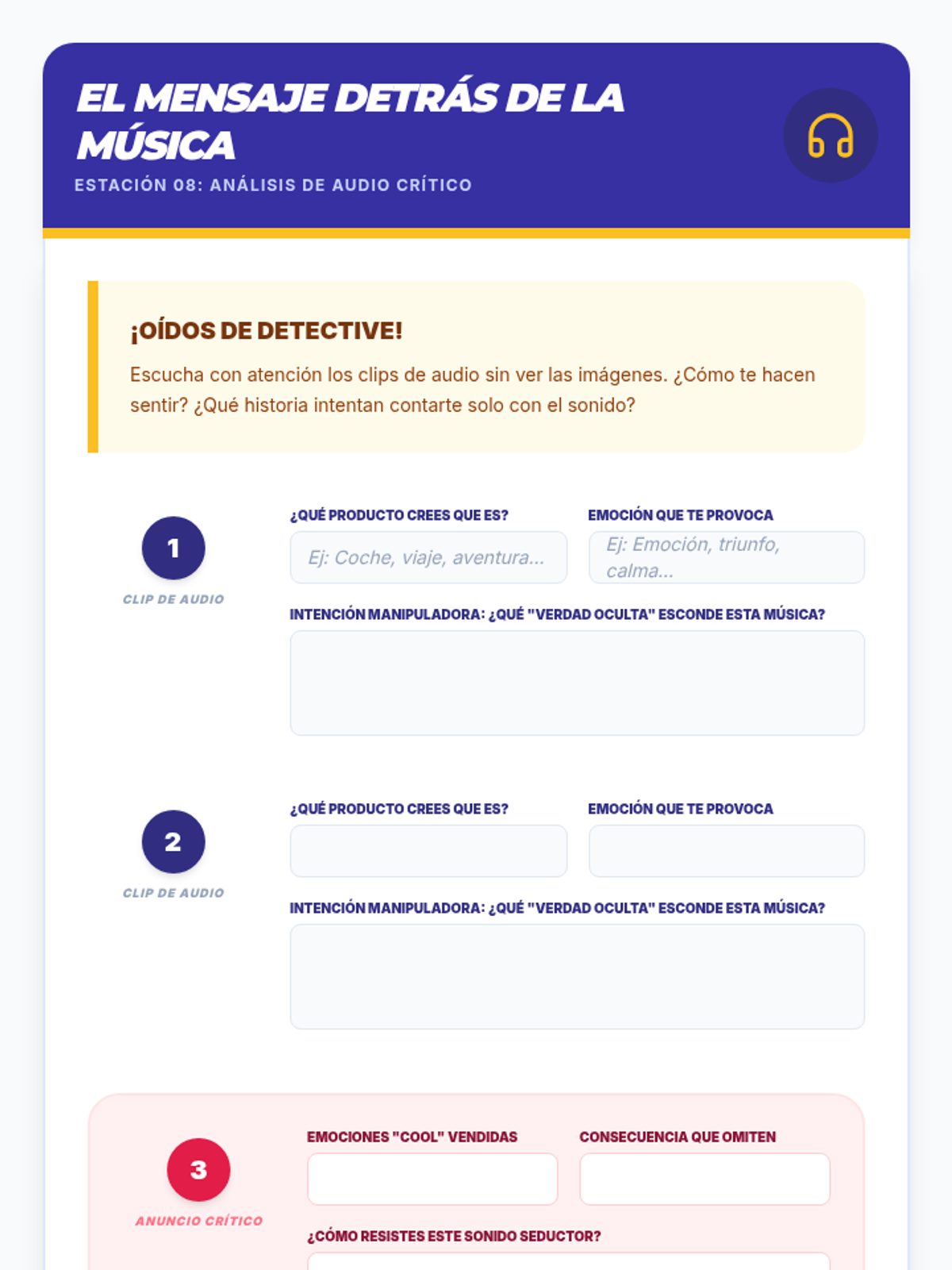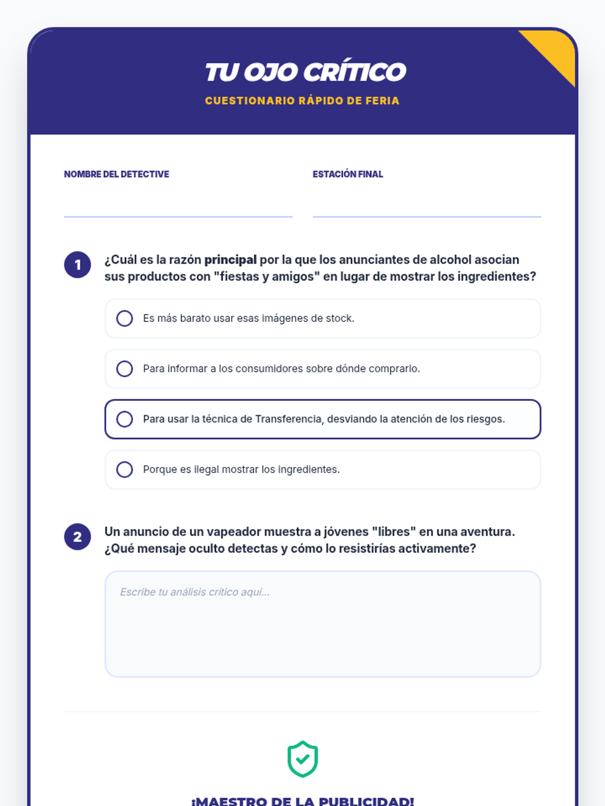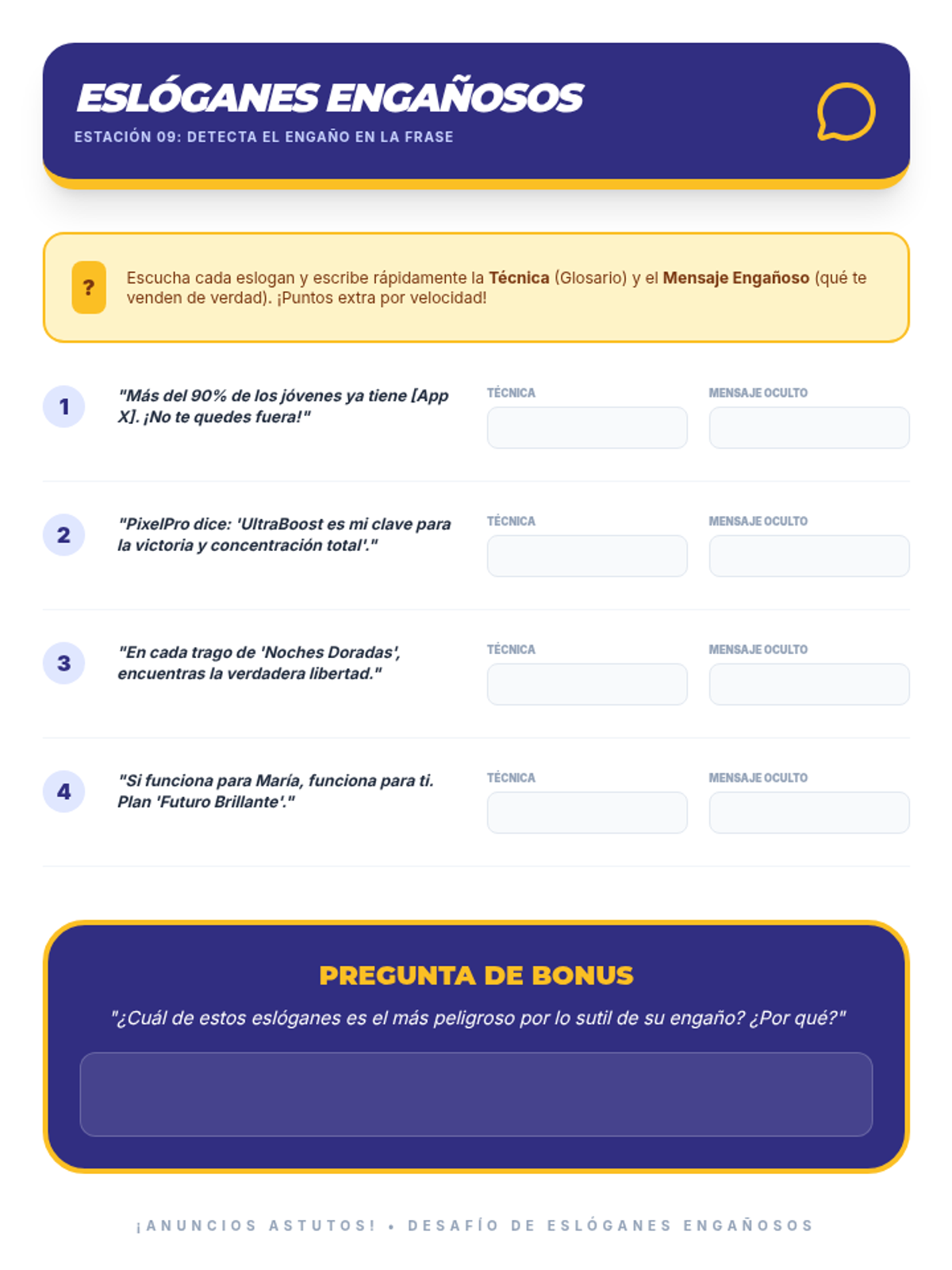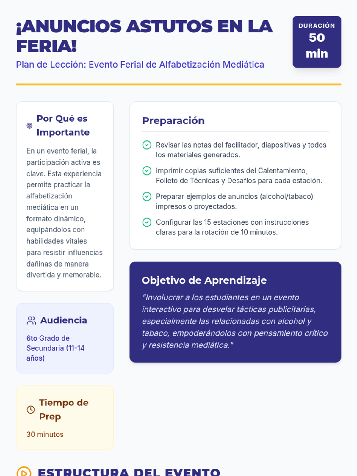 Una secuencia educativa diseñada para empoderar a estudiantes de secundaria en la alfabetización mediática, enfocándose en desmantelar las tácticas de persuasión de la publicidad, especialmente en productos de alcohol y tabaco.