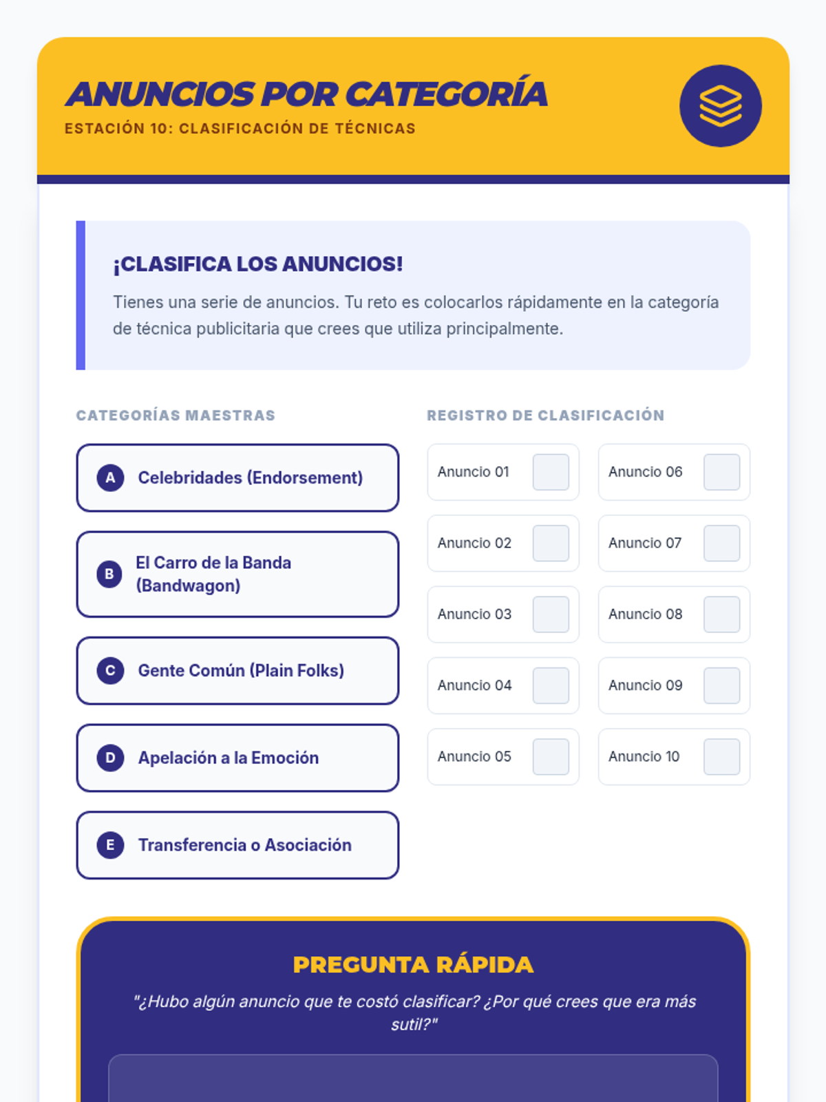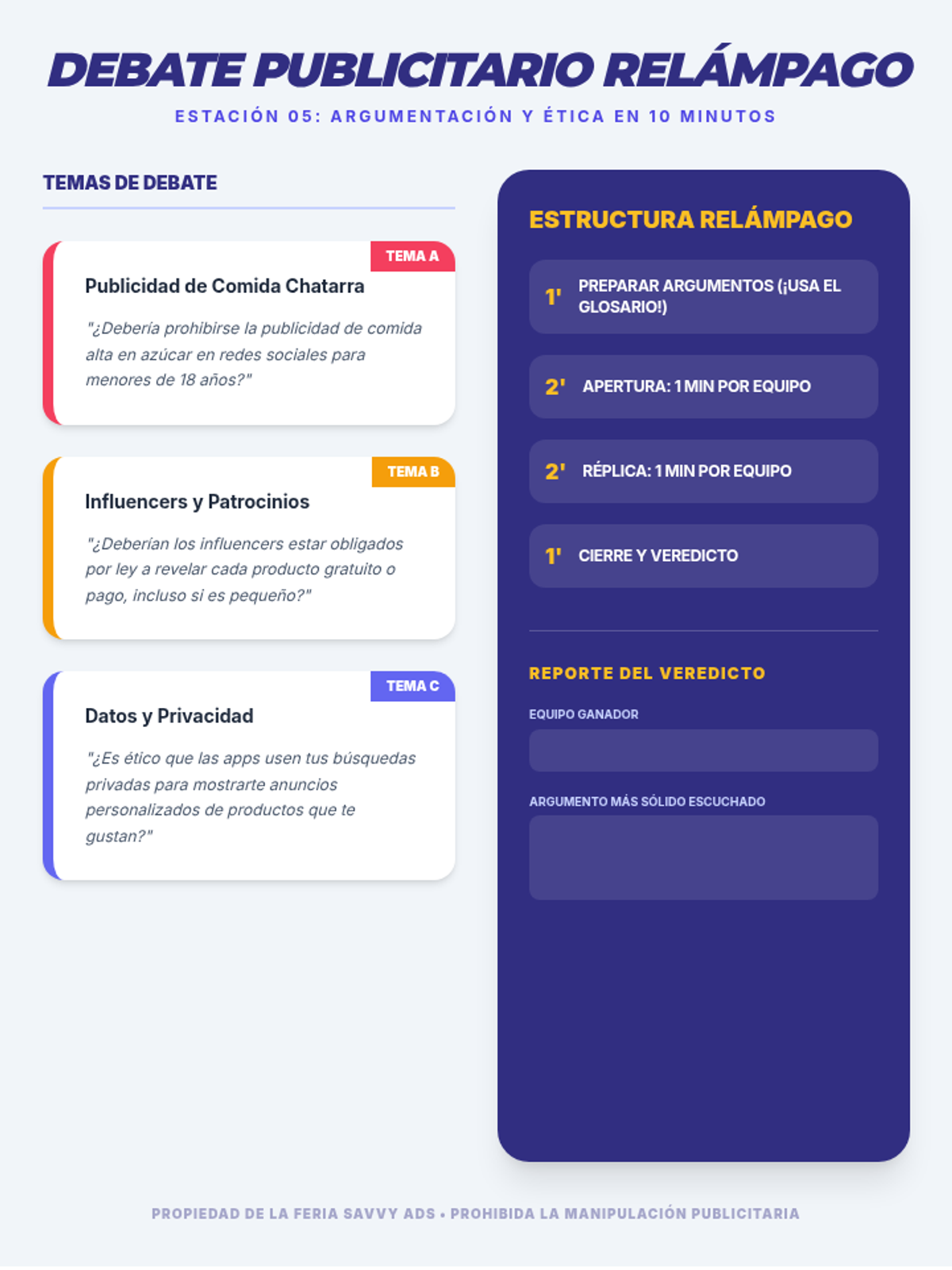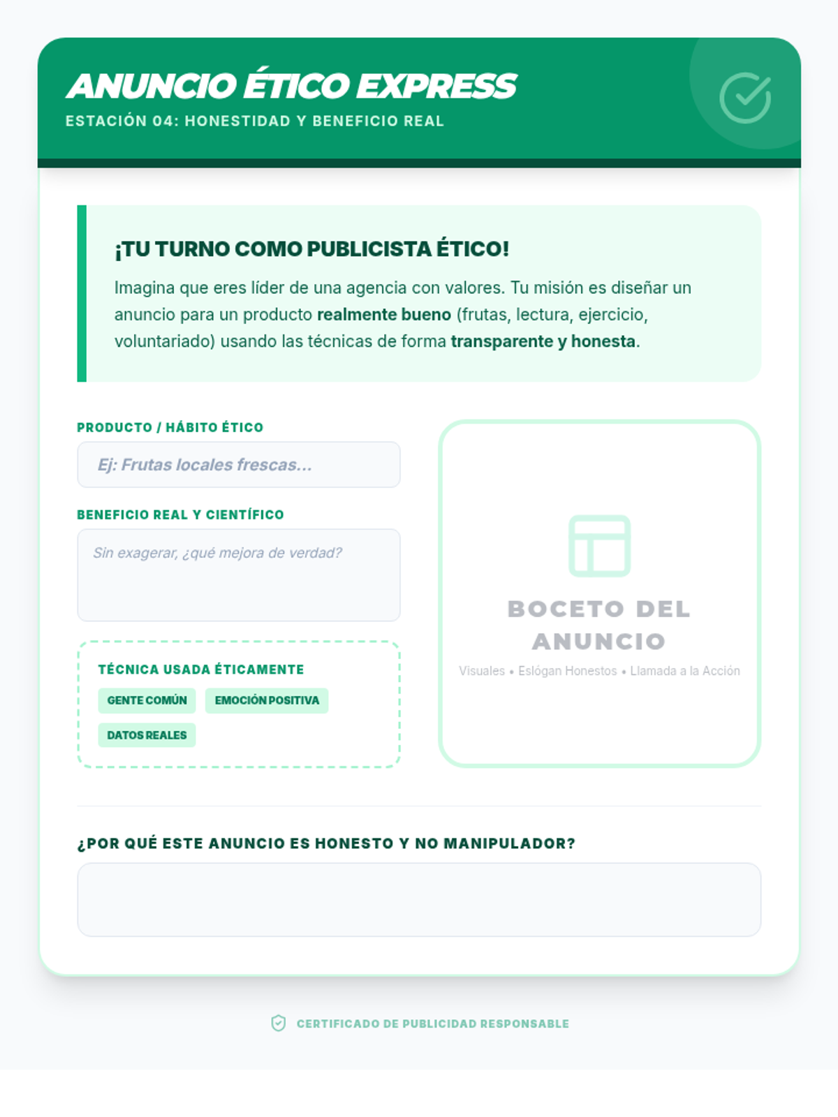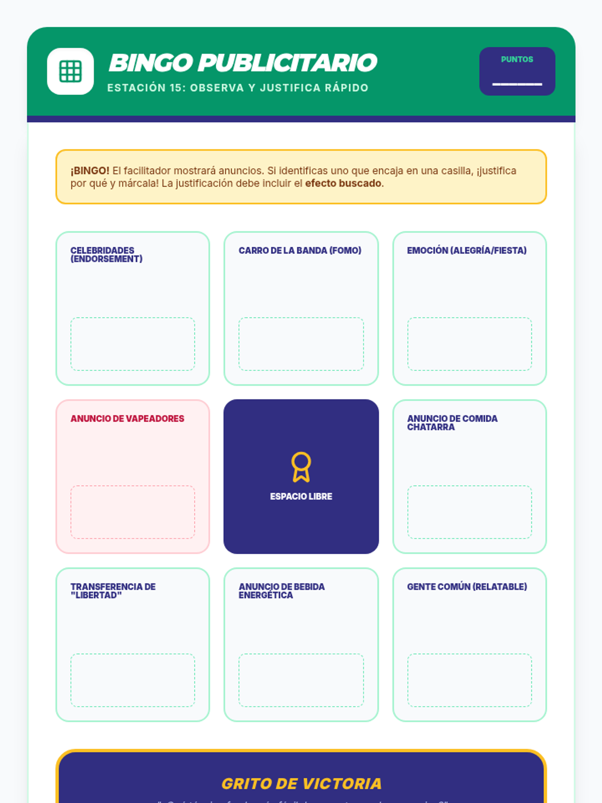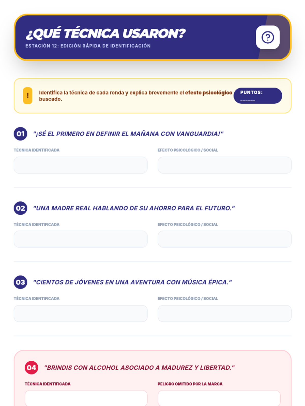 Una secuencia educativa diseñada para empoderar a estudiantes de secundaria en la alfabetización mediática, enfocándose en desmantelar las tácticas de persuasión de la publicidad, especialmente en productos de alcohol y tabaco.