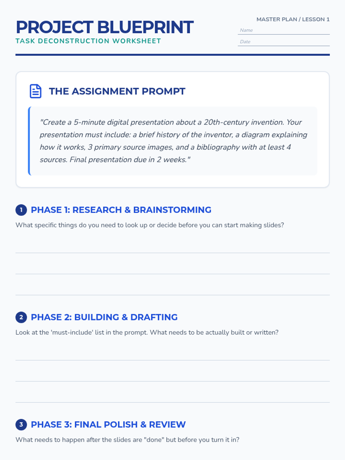 A comprehensive sequence for 8th-grade students focusing on assistive technology and executive functioning skills. Students learn to use digital calendars not just for due dates, but as project management tools through backward design, time estimation, and actionable scheduling.