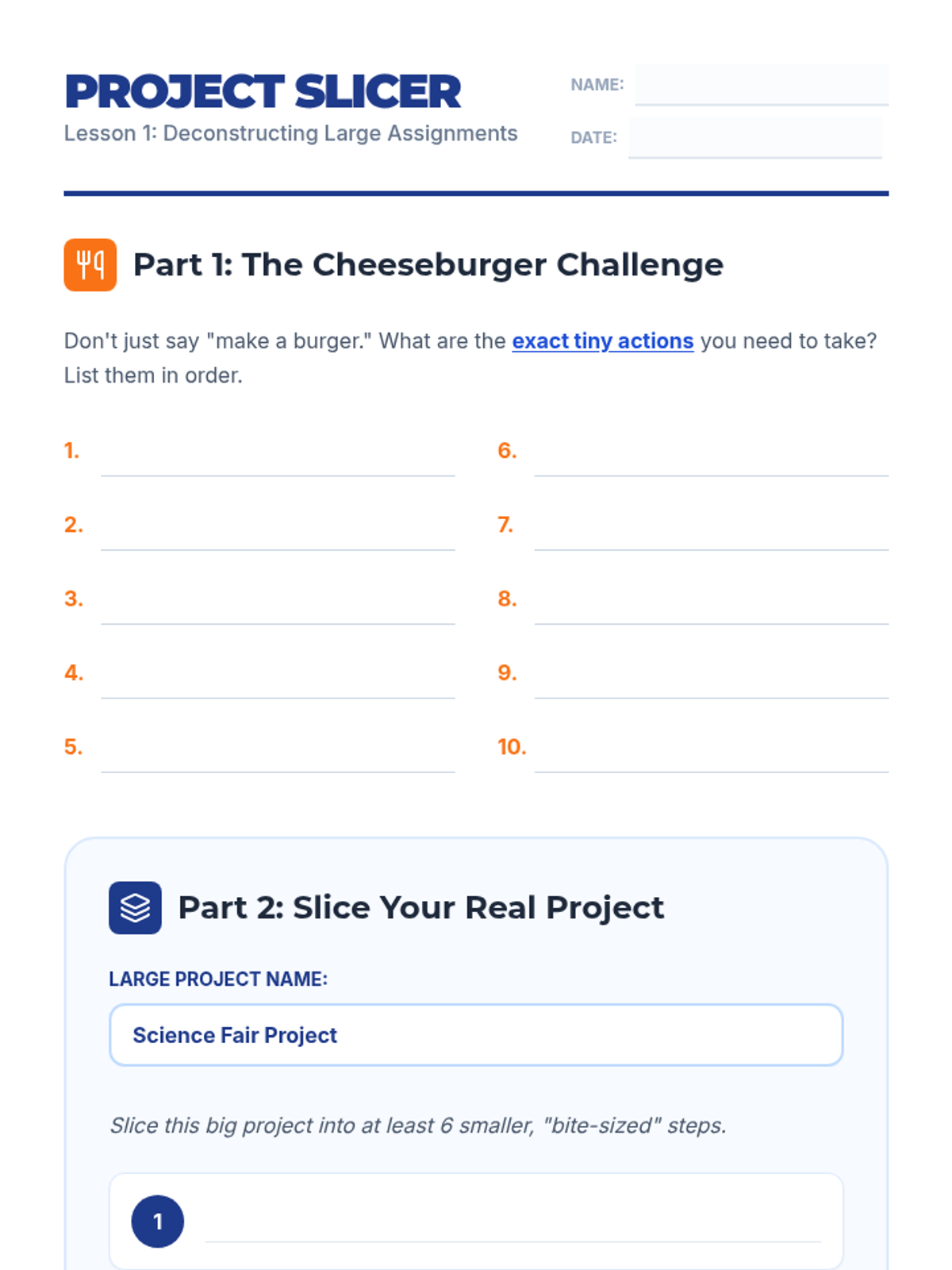 A sequence focused on executive functioning and backward design, teaching 6th-grade students how to use digital calendars to break down large projects into manageable steps, estimate time, and adapt to changes.