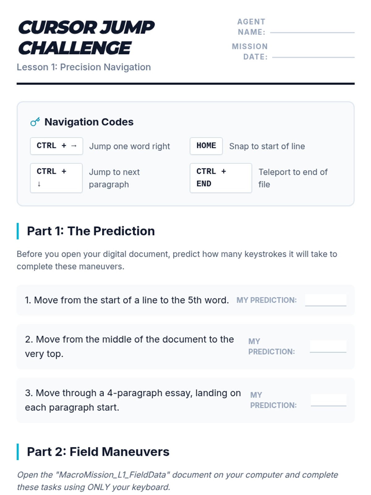 A comprehensive sequence for 8th-grade students focusing on keyboard navigation and text editing shortcuts. Students progress from basic cursor movement to advanced document formatting, fostering independence and efficiency in digital writing tasks.