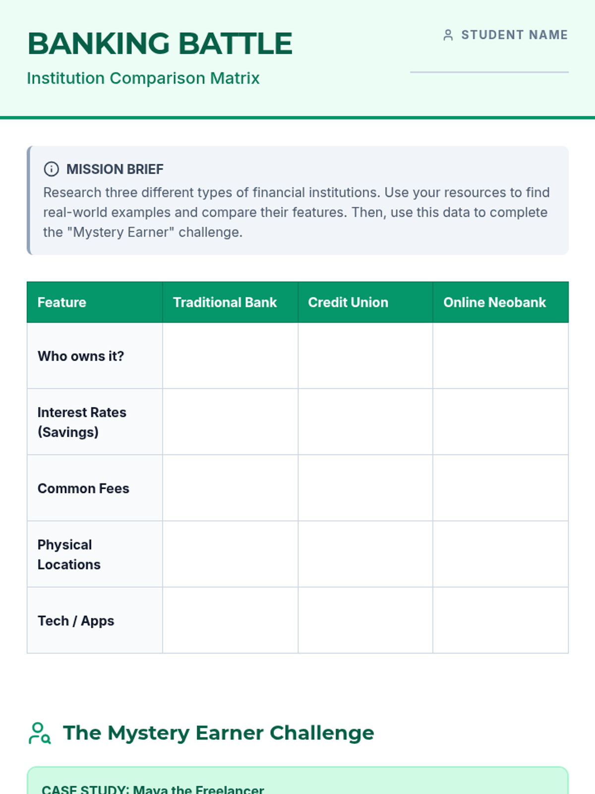A comprehensive unit for 7th-grade students on the mechanics of banking, interest rates, and creditworthiness. Students explore how financial institutions function and how personal financial decisions impact long-term economic power.
