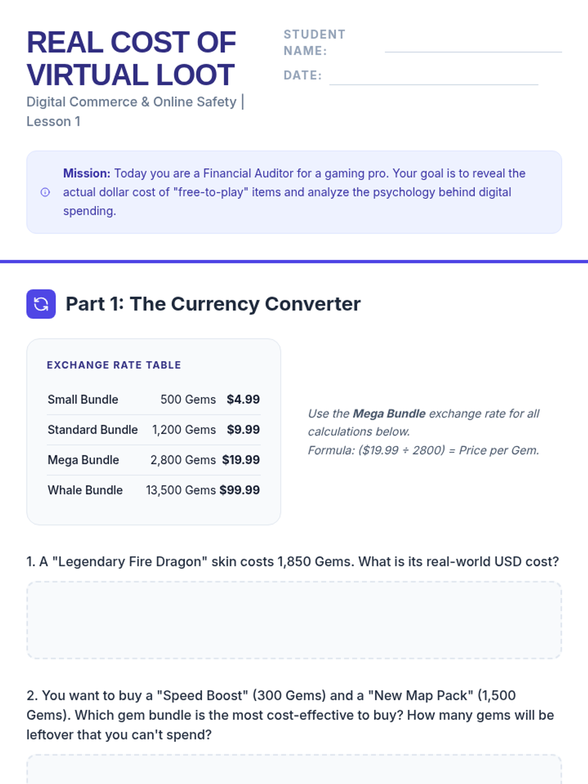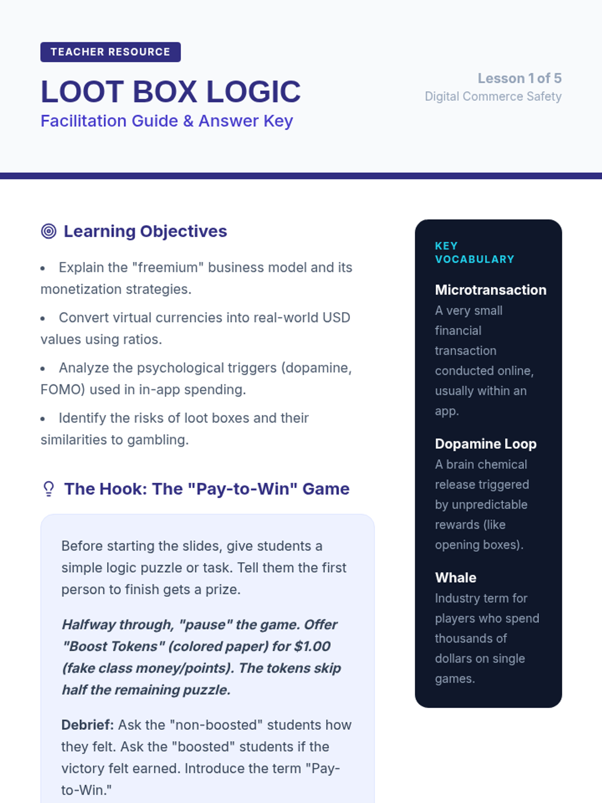 A comprehensive sequence for 8th-grade students on navigating the digital marketplace. It covers in-app purchases, subscription traps, digital payment security, terms of service agreements, and the ethical implications of the gig economy.