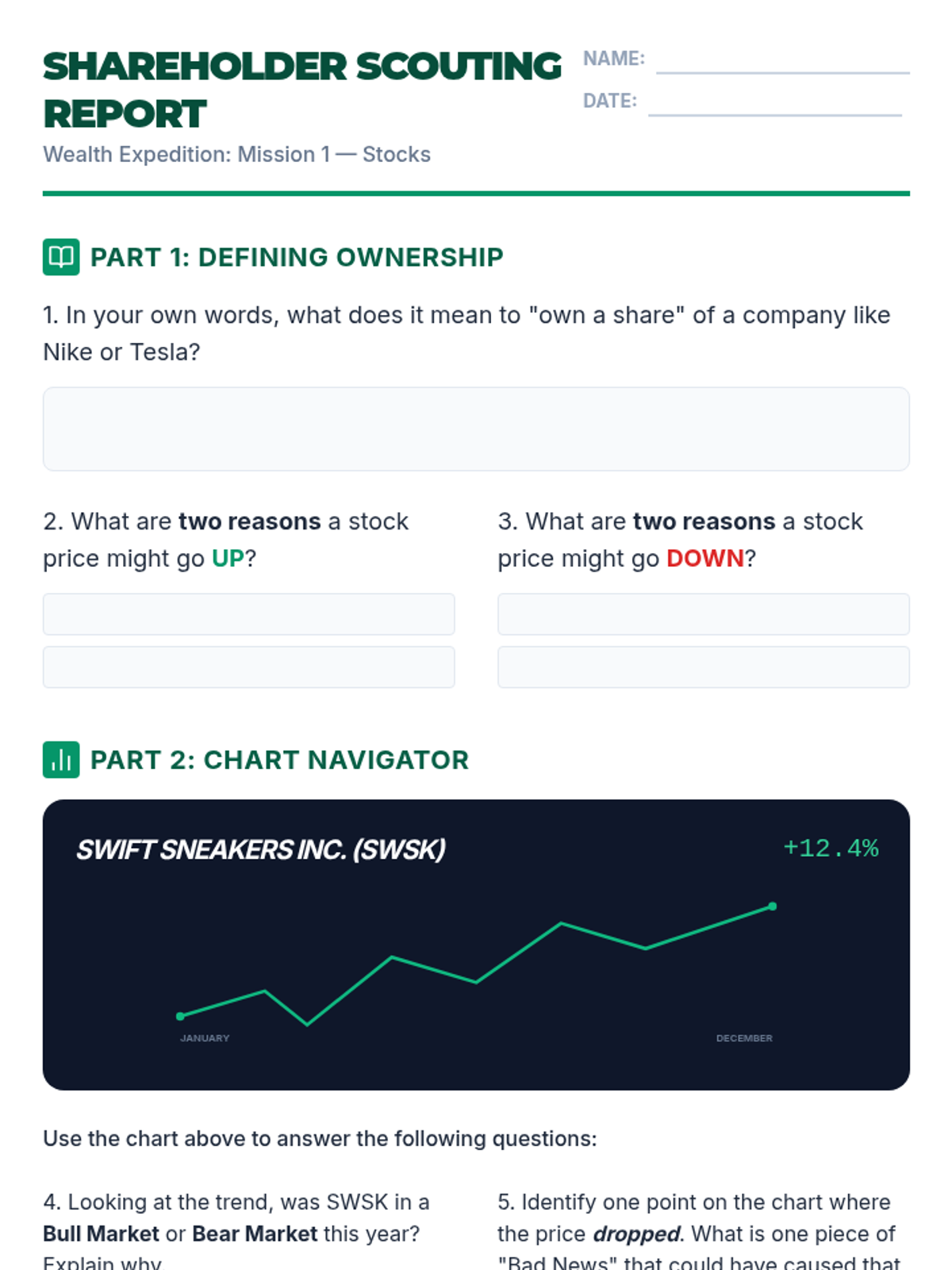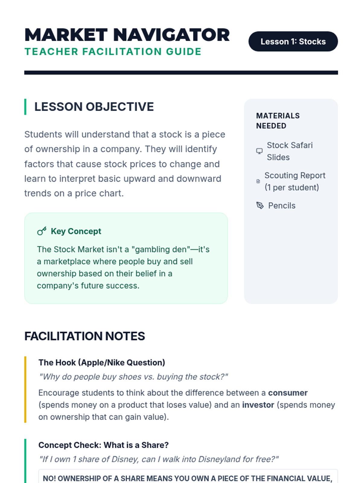 A comprehensive introduction to the world of investing, teaching 6th graders to differentiate between stocks, bonds, and mutual funds through hands-on simulations and visual analogies. Students explore the mechanics of ownership, lending, and risk management to build a foundation for lifelong financial literacy.