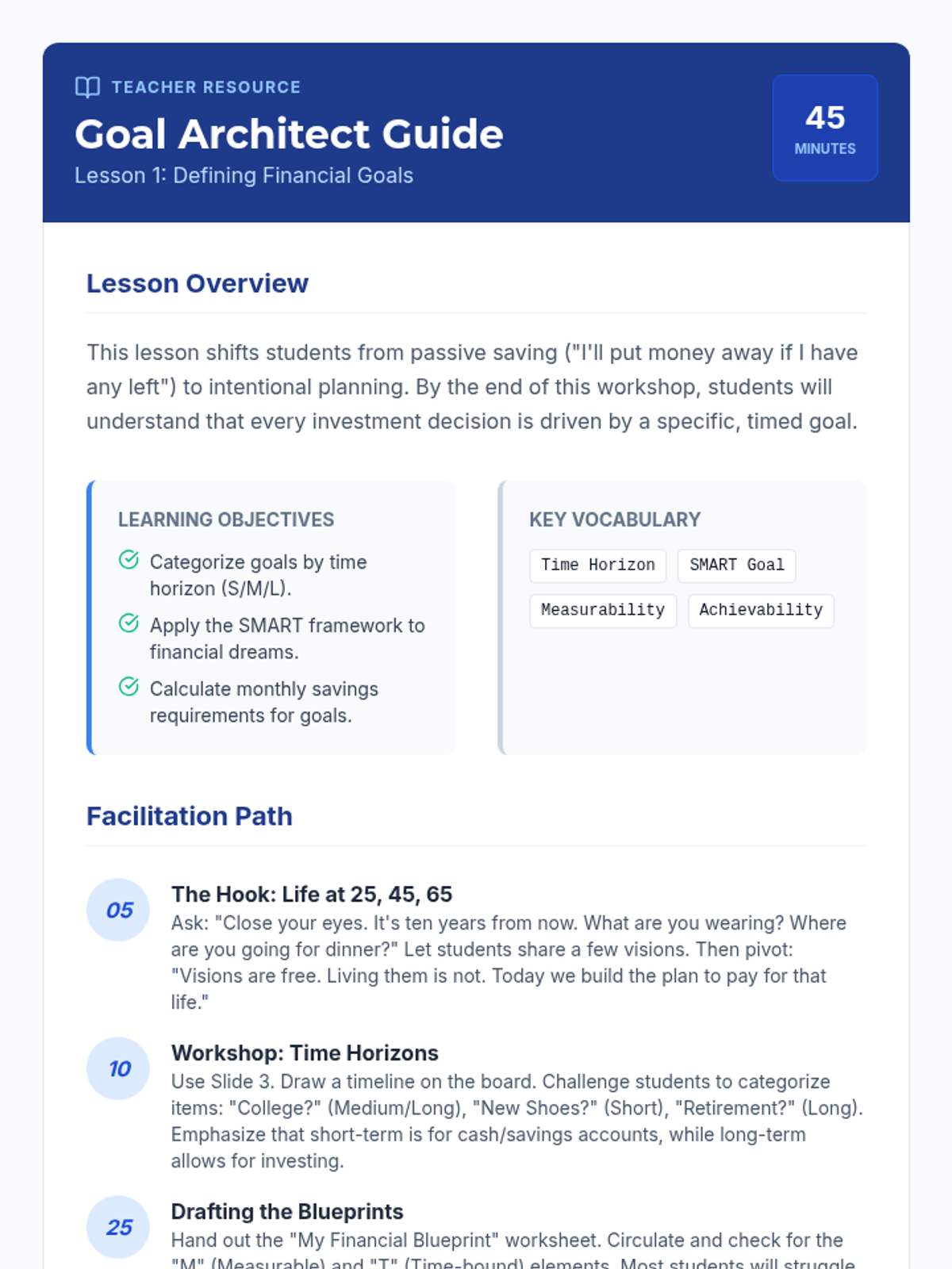 A project-based unit for 7th graders focusing on long-term financial strategy, risk management, and lifecycle-based investing. Students move beyond basic saving to building complex financial roadmaps and identifying market pitfalls.