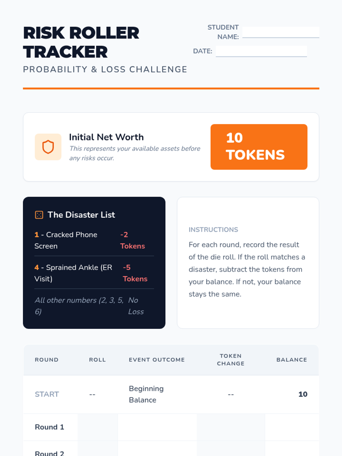A gamified introduction to insurance, focusing on risk assessment, shared risk pools, and the trade-offs between premiums and deductibles. Students use simulations to understand how insurance provides a financial safety net.
