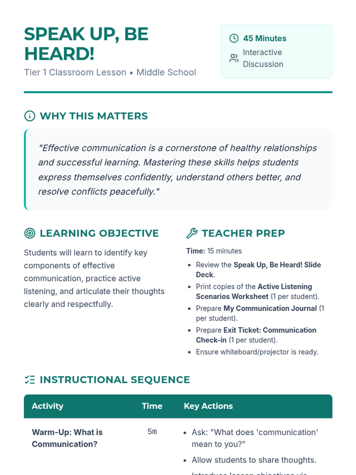 A comprehensive collection of lessons designed to equip students from elementary to middle school with essential life skills, including communication, financial literacy, and social-emotional awareness.