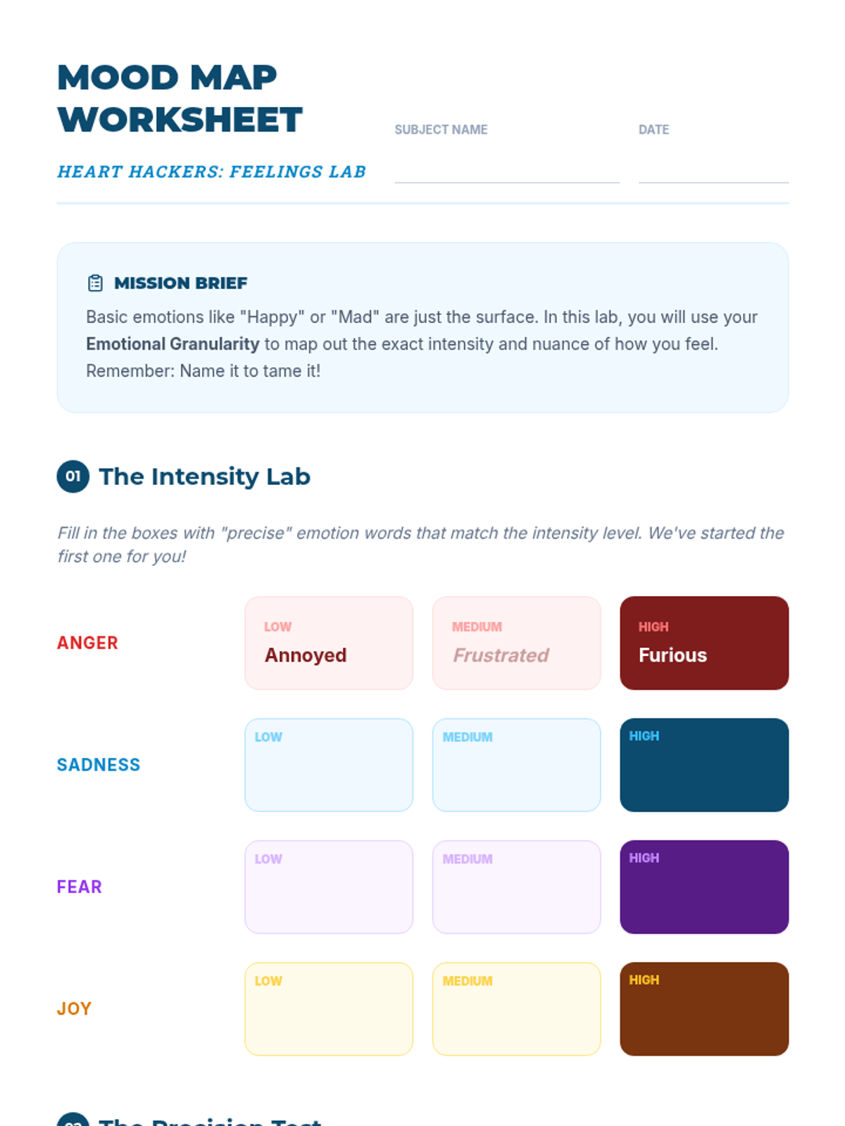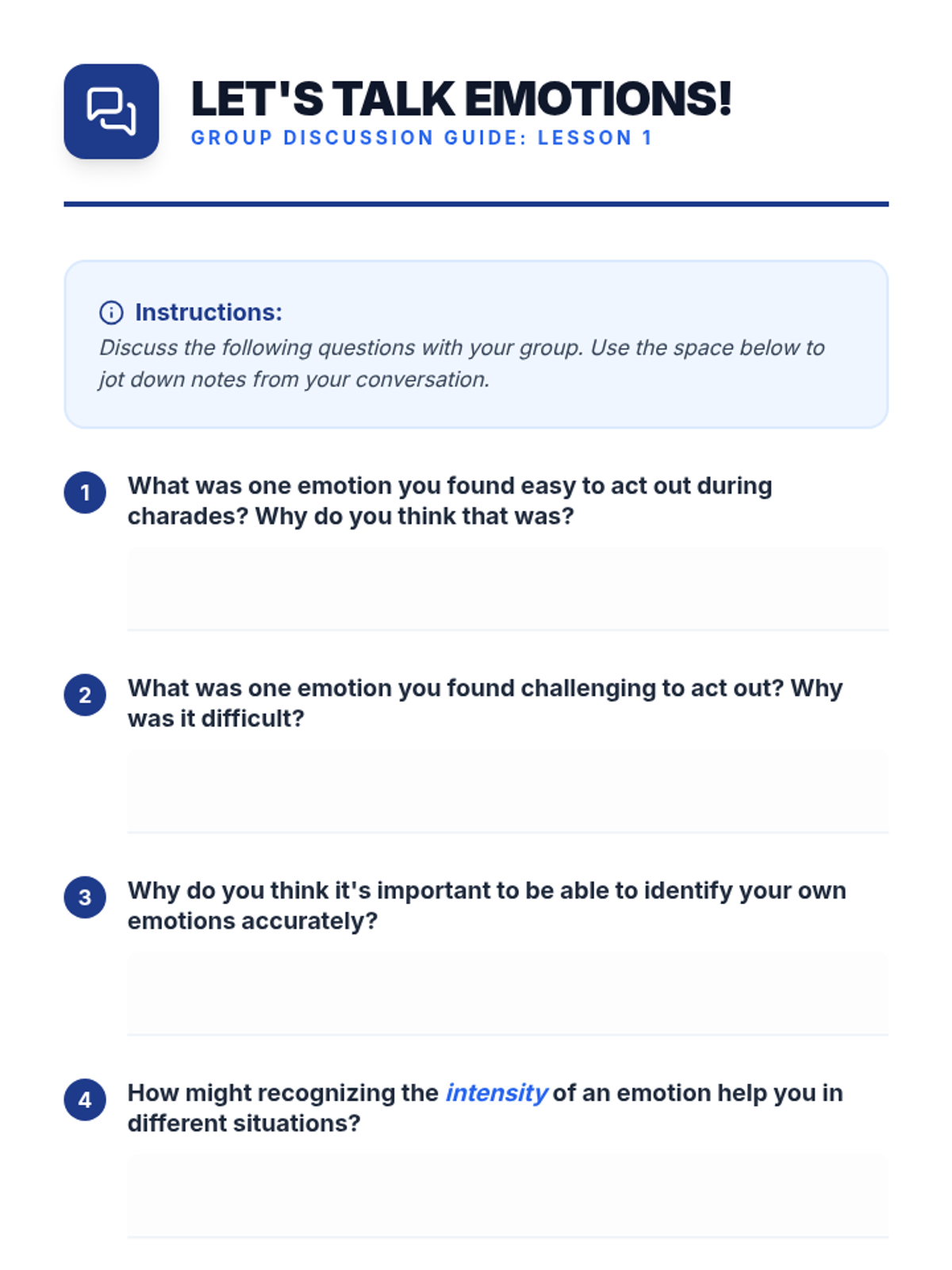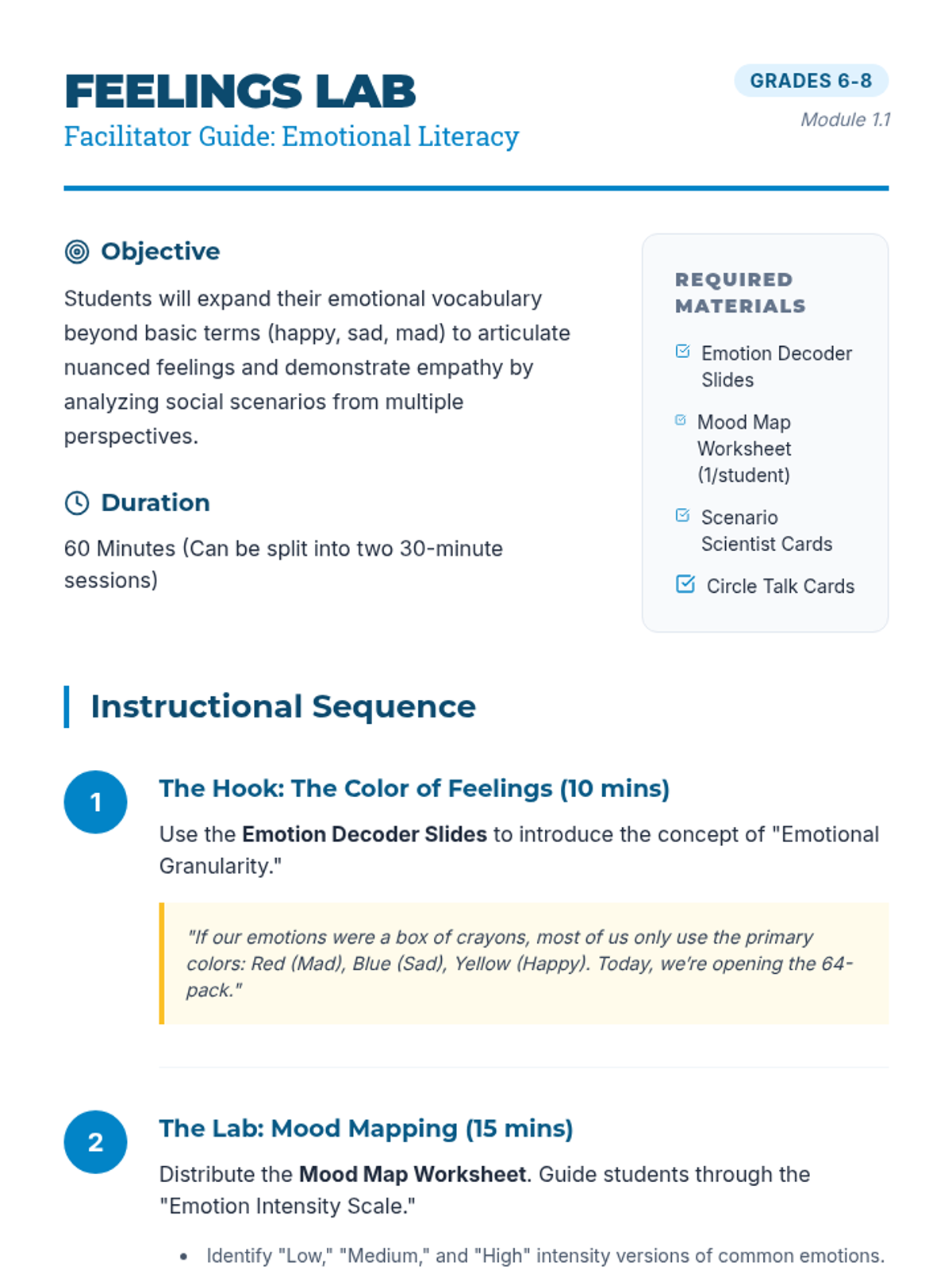 A sequence of lessons designed to help middle school students master emotional intelligence, starting with vocabulary and moving toward complex social dynamics.